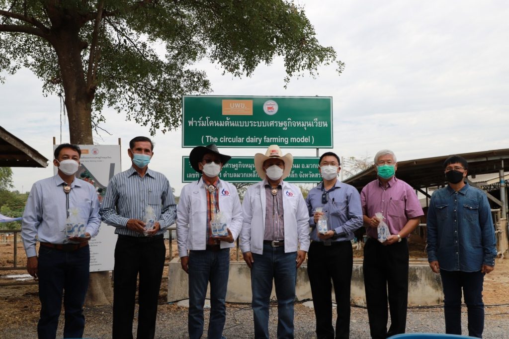 วันที่ 4 มกราคม 2565 นายสมพร ศรีเมือง ผู้อำนวยการ อ.ส.ค.มอบหมายให้นายชัยณรงค์ เปาอินทร์ รองผู้อำนวยการ อ.ส.ค.ร่วมเป็นเกียรติ และนายพีระ ไชยรุตม์ ผู้ช่วยผู้อำนวยการ อ.ส.ค. ร่วมแถลงข่าว โครงการการศึกษารูปแบบเศรษฐกิจหมุนเวียน เพื่อการจัดการของเสียในฟาร์มโคนมและการพัฒนาที่ยั่งยืน ร่วมกับสำนักงานสภานโยบายการอุดมศึกษา วิทยาศาสตร์ วิจัยและนวัตกรรมแห่งชาติ (สอวช.) โดยมี รศ.ดร.ธงชัย สุวรรณสิชณน์ รองผู้อำนวยการด้านบริหารงานวิจัย บพข. ร่วมเเถลงข่าว สำหรับผลงานวิจัย ของทีมนักวิจัย นำโดย ดร.ณัฐภร แก้วประทุม นักวิชาการ 7 ฝ่ายวิจัยและพัฒนาการเลี้ยงโคนม ได้สร้างต้นแบบการเลี้ยงโคนมในระบบเศรษฐกิจหมุนเวียน (Circular Economy) คือการคืนสภาพหรือสร้างคุณค่าใหม่ ให้แก่ของเสียเหลือทิ้งในวงจรชีวิตของการผลิตแทนการทิ้งไปซึ่งก่อให้เกิดผลกระทบทางสิ่งแวดล้อม มีการหมุนเวียนเป็นวงจรต่อเนื่องโดยไม่มีของเสีย และยังได้แนวทางอนุรักษ์ทรัพยากรธรรมชาติ