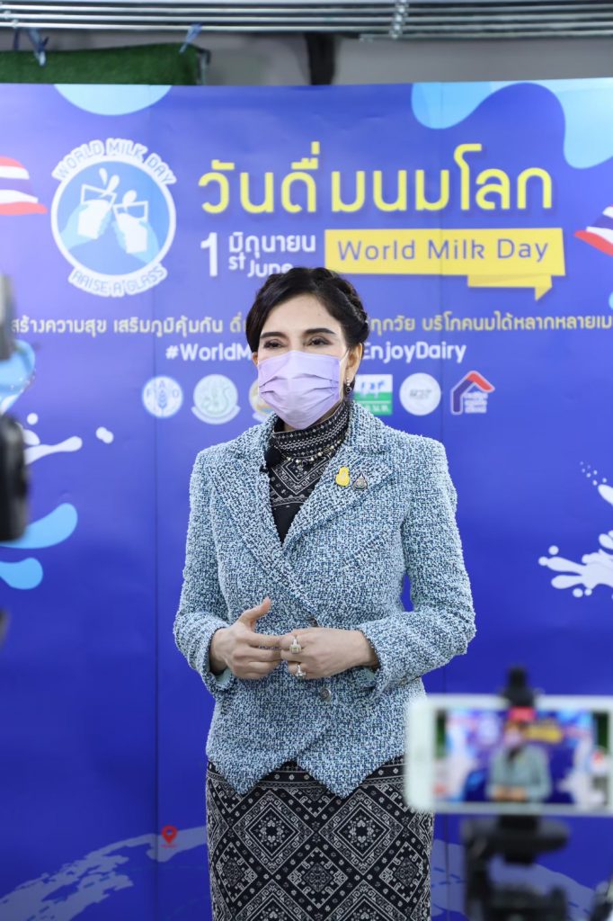 ช่วงเช้าวันที่ 20 พฤษภาคม 2564 นางสาวมนัญญา ไทยเศรษฐ์ รัฐมนตรีช่วยว่าการกระทรวงเกษตรและสหกรณ์ ให้เกียรติสัมภาษณ์และร่วมถ่ายทำเทปพิเศษเนื่องในวันดื่มนมโลก หรือ World Milk Day ประจำปี 2564 ที่จะถึงในวันที่ 1 มิถุนายนนี้ ซึ่งกรมปศุสัตว์ได้กำหนดคำขวัญในปีนี้ว่า “สร้างความสุขเสริมภูมิคุ้มกัน ดื่มนมทุกวัน ดื่มได้ทุกวัย บริโภคนมได้หลากหลายเมนู” #WorldMilkDay #EnjoyDairy เพื่อรณรงค์ให้คนไทยหันมาบริโภคนมมากยิ่งขึ้น โดยเทปดังกล่าวจะทำการเผยแพร่ผ่านช่องทางออนไลน์ Facebook Page : กองผลิตภัณฑ์ปศุสัตว์ ในวันที่ 22 พฤษภาคม 2564 และวันที่ 1 มิถุนายน 2564 เวลา 12.30 น. เป็นต้นไป รวมไปถึงเผยแพร่ผ่านช่องทางโทรทัศน์ รายการ ณัชชา แอนด์เดอะแก๊ง ช่อง23 (Workpoint) วันอาทิตย์ที่ 23 และ 30 พฤษภาคม 2564 เวลา 8.30-9.00 น. โดย รมช. ได้มีการสาธิตการทำผลิตภัณฑ์จากนมไทย-เดนมาร์ค นมโคสดแท้ 100% ไม่ผสมนมผง เป็นเมนูกล้วยหอมทอดกรอบครีมวานิลา และนายสุชาติ จริยาเลิศศักดิ์ รองผู้อำนวยการ ทำการแทนผู้อำนวยการ อ.ส.ค. ได้ร่วมทำเมนูสมูทตี้ 5 สี เพื่อสุขภาพ โดยการบันทึกเทปดังกล่าวได้มีการถ่ายทำ ณ บริษัท เน็กซ์เจน เอ็ดดูเคชั่น จำกัด อาคารนาริตะ ชั้น7 เมืองทองธานี กรุงเทพฯ