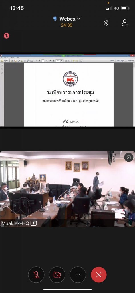 วันที่ 29 ธันวาคม 2564 นายชัยณรงค์ เปาอินทร์ รองผู้อำนวยการ อ.ส.ค. ให้เกียรติเป็นประธานในการประชุมคณะกรรมการขับเคลื่อนการดำเนินงานของศูนย์ปฏิบัติการต่อต้านการทุจริตของ อ.ส.ค. ครั้งที่ 1/2565 เพื่อเตรียมวางแผนและดำเนินงานขับเคลื่อน ITA องค์กร และส่วนงานที่เกี่ยวข้อง โดยมีคณะกรรมการฯ และผู้ที่เกี่ยวข้อง เข้าร่วมการประชุมในครั้งนี้ ณ ห้องประชุม 1 สำนักงานใหญ่ อ.ส.ค.มวกเหล็ก จังหวัดสระบุรี ผ่าน Video Conference และระบบ Cisco Webex กับห้องประชุมสำนักงาน อ.ส.ค. ภาคทุกภาค โดยทุกท่านได้ปฏิบัติตามมาตรการป้องกันการแพร่ระบาดของโรคติดเชื้อโควิด-19 อย่างเคร่งครัด