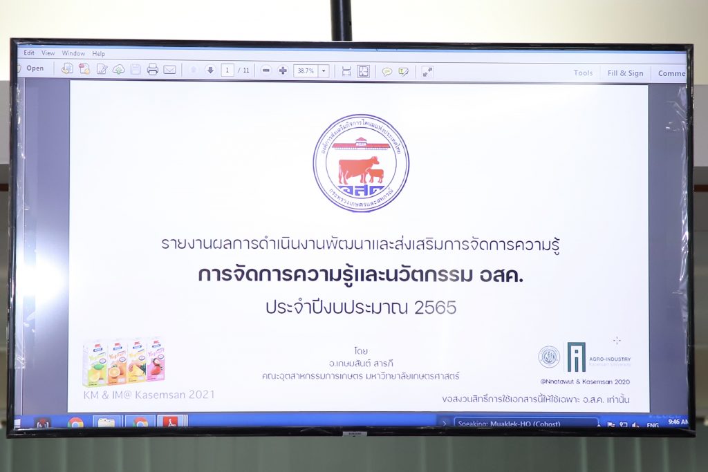 ช่วงเช้าวันที่ 22 ธันวาคม 2564 นายสมพร ศรีเมือง ผู้อำนวยการ อ.ส.ค. ให้เกียรติเป็นประธานในการประชุมระดับหัวหน้าฝ่าย/สำนักงาน/นักวิชาการ 8 ขึ้นไป ครั้งที่ 3/2565 เพื่อติดตามผลการดำเนินงานครั้งที่ผ่านมา และร่วมรับฟังรายงานผลการดำเนินงานพัฒนาและส่งเสริมการจัดการความรู้ “การจัดการความรู้และนวัตกรรม อ.ส.ค.” ประจำปี 2565 จากอาจารย์เกษมสันต์ สารภี คณะอุตสาหกรรมการเกษตร มหาวิทยาลัยเกษตรศาสตร์ ผ่านระบบ VDO Conference โดยทุกท่านได้ปฏิบัติตามมาตรการป้องกันการแพร่ระบาดของโรคติดเชื้อโควิด -19 อย่างเคร่งครัด ณ ห้องประชุม 1 สำนักงานใหญ่ อ.ส.ค. มวกเหล็ก จ.สระบุรี กับ ห้องประชุม 3 ชั้น 5 สำนักงาน อ.ส.ค.กรุงเทพฯ และสำนักงานภาคทุกภาค