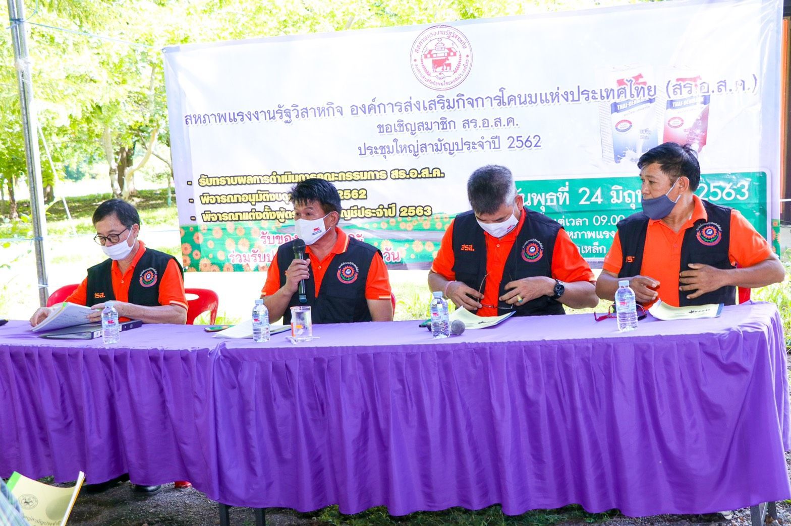 ช่วงเช้าวันที่ 24 มิถุนายน 2563 นายสุชาติ จริยาเลิศศักดิ์ รองผู้อำนวยการ ทำการแทนผู้อำนวยการ อ.ส.ค.ให้เกียรติเป็นประธานการประชุมใหญ่สามัญประจำปี 2562 โดยมีนายกฤษ สุวรรณรัตน์ ประธานสหภาพแรงงานรัฐวิสาหกิจ อ.ส.ค.เป็นผู้กล่าวรายงาน และมีตัวแทนจากสำนักงานสวัสดิการและคุ้มครองแรงงานจังหวัดสระบุรีพร้อมด้วยสมาชิกสหภาพแรงงานรัฐวิสาหกิจ อ.ส.ค.เข้าร่วมการประชุมในครั้งนี้ ณ สำนักงานสหภาพแรงงานรัฐวิสาหกิจ อ.ส.ค. อำเภอมวกเหล็ก จังหวัดสระบุรี