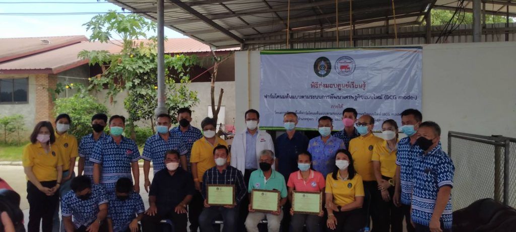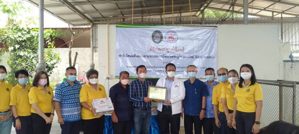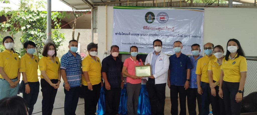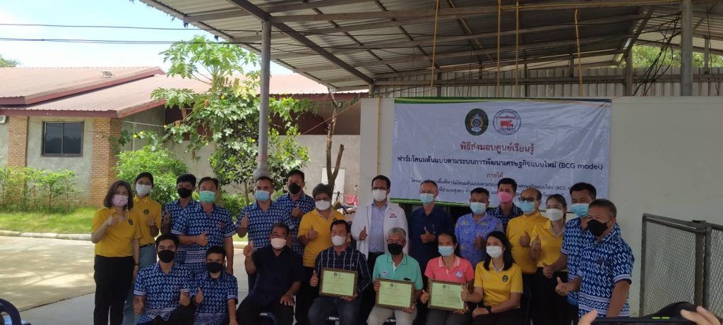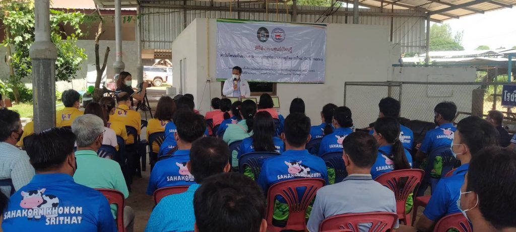 วันที่ 9 มิถุนายน 2565 นายสมพร ศรีเมือง ผู้อำนวยการ อ.ส.ค.มอบหมายให้นายพีระ ไชยรุตม์ ผู้ช่วยผู้อำนวยการ อ.ส.ค.ให้เกียรติเป็นประธานเปิดกิจกรรมการส่งมอบศูนย์การเรียนรู้ฟาร์มโคนมต้นแบบตามระบบการพัฒนาเศรษฐกิจแบบใหม่ (BCG model) และลงนามในเกียรติบัตรฟาร์มที่ได้รับคัดเลือกเป็นฟาร์มต้นแบบตามระบบการพัฒนาเศรษฐกิจแบบใหม่ (BCG model) ตามโครงการพัฒนาพื้นที่ฟาร์มโคนมต้นแบบตามระบบการพัฒนาเศรษฐกิจแบบใหม่ (BCG model) เพื่อเป็นแหล่งเรียนรู้ในการจัดการระบบน้ำและไฟฟ้าในฟาร์มโคนมโดยใช้พลังงานแสงอาทิตย์ ซึ่งโครงการดังกล่าวเป็นโครงการความร่วมมือทางวิชาการ (MOU) ระหว่างองค์การส่งเสริมกิจการโคนมแห่งประเทศไทย (อ.ส.ค.) กับมหาวิทยาลัยราชภัฎอุดรธานี โดยมี ดร.วิบูล เป็นสุข รองอธิการบดี มหาวิทยาลัยราชภัฎอุดรธานี,นายแดนณรงค์ ทองอันตัง หัวหน้าสำนักงาน อ.ส.ค.ภาคตะวันออกเฉียงเหนือ,ผู้บริหาร อ.ส.ค.และสมาชิกเกษตรผู้เลี้ยงโคนม เข้าร่วมกิจกรรม ทั้งนี้ได้มีตัวแทนสมาชิกในเขตส่งเสริมการเลี้ยงโคนมภาคตะวันออกเฉียงเหนือเขต 2 จำนวน 3 ราย ที่ได้รับคัดเลือกเป็นฟาร์มโคนมต้นแบบตามระบบการพัฒนาเศรษฐกิจแบบใหม่ ( BCG model) ดังนี้
