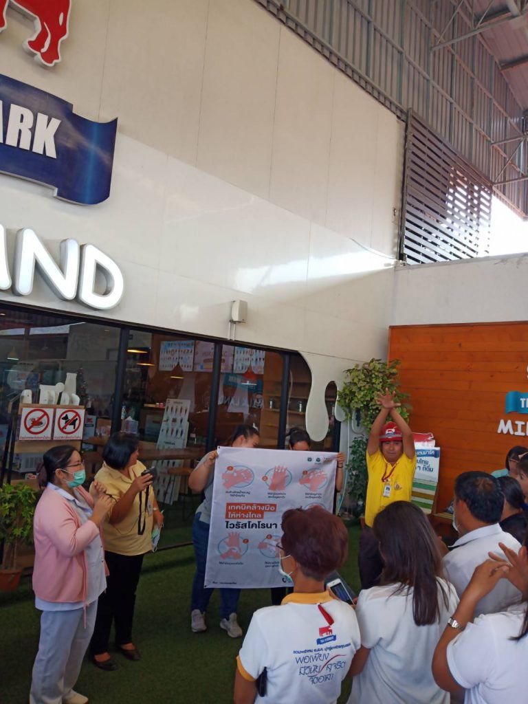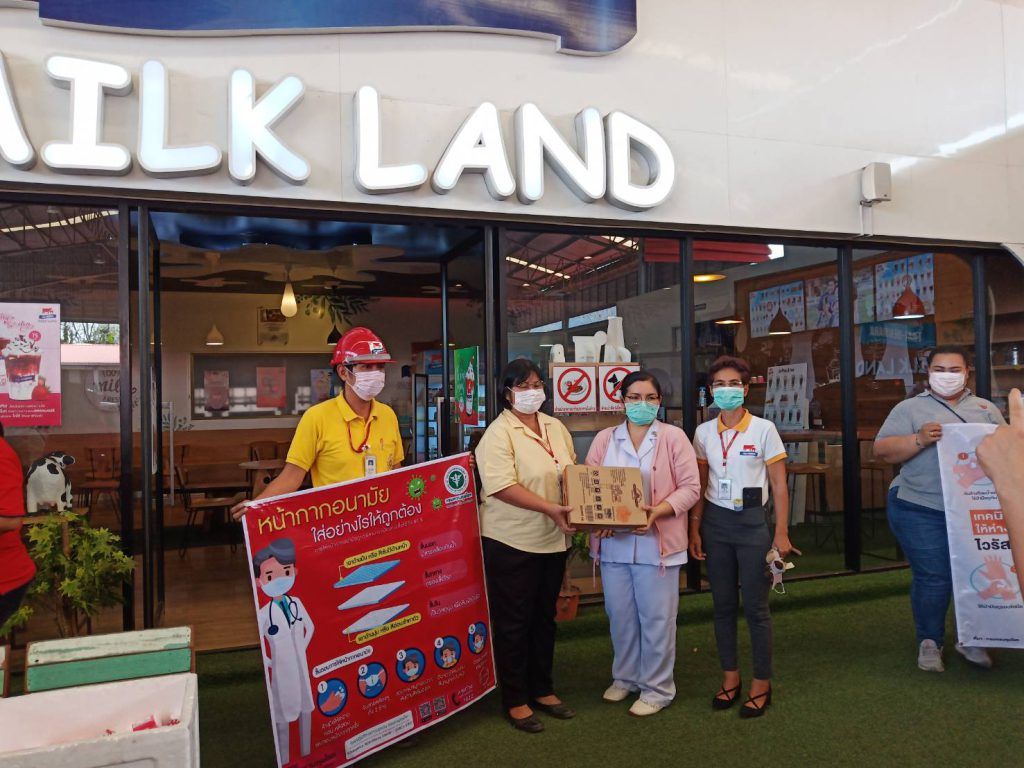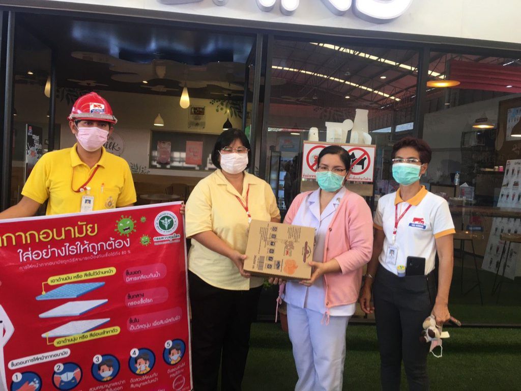 คุณธนพิพัฒน์ ธำรงสุธัญยุทธ์ อนุกรรมการ CG/CSR ร่วมแจกหน้ากากอนามัย และแอลกอฮอล์ฆ่าเชื้อ ให้กับพนักงาน