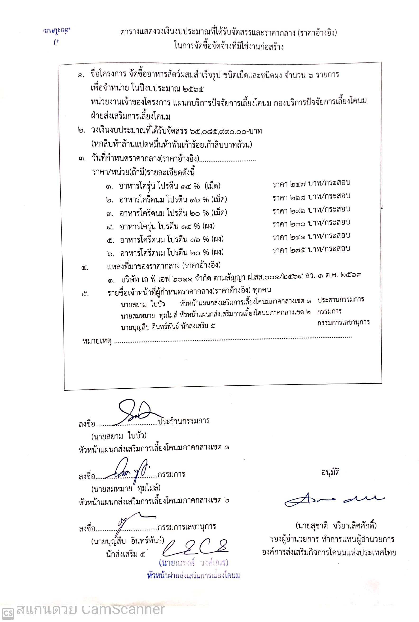 จัดซื้ออาหารสัตว์ผสมสำเร็จรูป ชนิดเม็ดและชนิดผง จำนวน 6 รายการ เพื่อจำหน่าย ในปีงบประมาณ 2565
