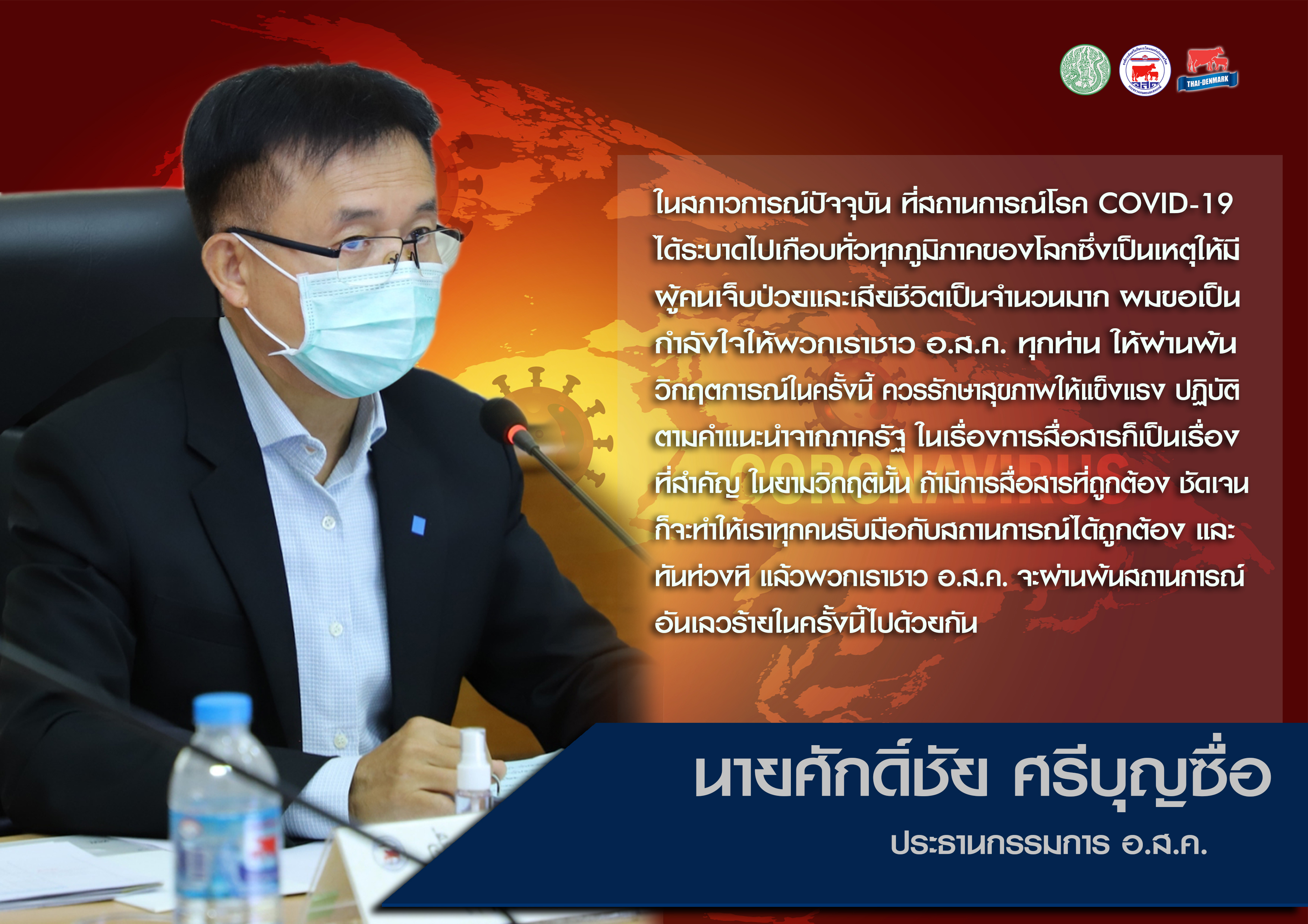 ประธานกรรมการ อ.ส.ค. ส่งสารเเสดงความห่วงใยพนักงาน อ.ส.ค.