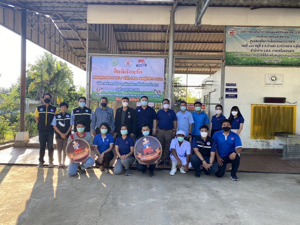 จากนั้นคณะอนุกรรมการ CG/CSR ได้เข้าเยี่ยมชมฟาร์มคุณวารี เพชรนิล ฟาร์มโคนมสมาชิกใหม่ต่อยอดจากฟาร์มเครือข่ายในเขตพื้นส่งเสริมการเลี้ยงโคนม อ.ส.ค. เพื่อรับฟังปัญหาจากเกษตรกรผู้เลี้ยงโคนม ณ อำเภอทุ่งเสลี่ยม จังหวัดสุโขทัย และเยี่ยมชมโรงงานผลิตอาหารสัตว์สำหรับโคนมและโคเนื้อโดยมีนายสันติภาพ ลิมปะพันธุ์ ประธานที่ปรึกษาสหกรณ์การเกษตสวรรคโลก จำกัด ให้การต้อนรับ ณ อำเภอสวรรคโลก จังหวัดสุโขทัย และเยี่ยมชมศูนย์ส่งเสริมการเลี้ยงโคนมกงไกรลาศเพื่อติดตามงานด้านส่งเสริมการเลี้ยงโคนม/สถานการณ์ปริมาณน้ำนมดิบ ณ ศูนย์ส่งเสริมการเลี้ยงโคนมกงไกรลาศ อำเภอกงไกรลาศ จังหวัดสุโขทัย โดยทุกท่านได้ปฏิบัติตามมาตรการป้องการแพร่ระบาดของโรคติดเชื้อโควิด-19 อย่างเคร่งครัด
