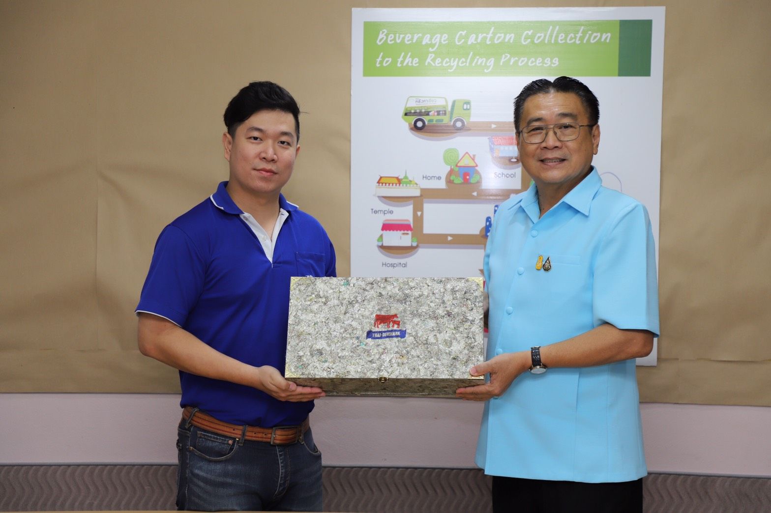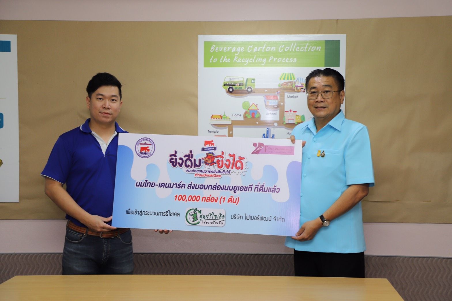 ช่วงบ่ายวันที่ 18 กันยายน 2563 นายสุชาติ จริยาเลิศศักดิ์ รองผู้อำนวยการ ทำการแทนผู้อำนวยการ อ.ส.ค. ได้ให้เกียรติส่งมอบกล่องนม ยูเอชที ไทย-เดนมาร์คที่ดื่มแล้ว ในโครงการ “ยิ่งดื่ม ยิ่งได้” จำนวน 100,000 กล่อง (1 ตัน) ให้กับ บริษัท ไฟเบอร์พัฒน์ จำกัด เพื่อนำเข้าสู่กระบวนการรีไซเคิล และนำมาใช้ในกิจกรรม CSR ของ อ.ส.ค.ต่อไป ณ บริษัท ไฟเบอร์พัฒน์ จำกัด อำเภอบางเสาธง จังหวัดสมุทรปราการ