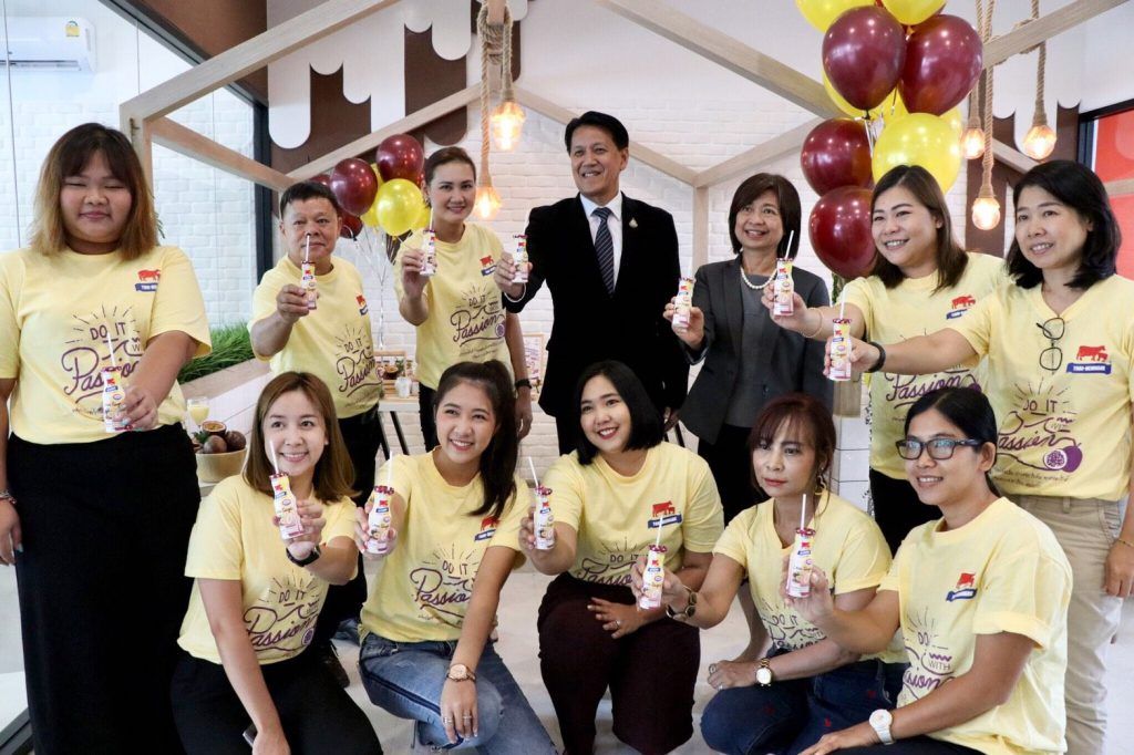 ช่วงบ่ายวันที่ 18 กันยายน 2562 ดร.ณรงค์ฤทธิ์ วงศ์สุวรรณ ผู้อำนวยการ อ.ส.ค. ให้เกียรติสัมภาษณ์แก่สื่อมวลชน ในกิจกรรม Group Interview (ครั้งที่ 2) พร้อมด้วยผู้บริหารและพนักงาน อ.ส.ค. ในประเด็นเรื่อง การออกผลิตภัณฑ์รสชาติใหม่ ภายใต้ชื่อ “โยเกิร์ตพร้อมดื่ม ปราศจากไขมัน พาสเจอร์ไรส์ กลิ่นเสาวรส ตราไทย-เดนมาร์ค” ซึ่งเป็นนวัตกรรมใหม่ล่าสุดของ อ.ส.ค. เป็นโยเกิร์ตพร้อมดื่มที่มีแคลเซียมธรรมชาติสูง สูตรน้ำตาลน้อย แต่ให้คุณค่าทางโภชนาการสูง ซึ่งผลิตภัณฑ์นี้เป็นรสชาติใหม่ที่พัฒนาขึ้นเพื่อสร้างความหลากหลายและเพิ่มทางเลือกในการซื้อผลิตภัณฑ์นมแก่ผู้บริโภคที่ใส่ใจต่อสุขภาพเพราะใช้สารสกัดจากต้นหญ้าหวาน ที่มีคุณสมบัติให้ความหวานมากกว่าน้ำตาล 200-300 เท่า แต่ไม่ให้พลังงานและยังมีประโยชน์ต่อสุขภาพ โดยมีวางจำหน่ายแล้วในขนาด 100 มิลลิลิตร ในราคา 8 บาท ที่ร้านขายผลิตภัณฑ์นมไทย-เดนมาร์ค สาขาทีโอที, สาขา อ.ต.ก. และฝ่ายท่องเที่ยวเชิงเกษตร อ.ส.ค. อ.มวกเหล็ก จ.สระบุรี, ร้านThai-Denmark Milk Land  และวิลล่า มาร์เก็ตทุกสาขา กิจกรรมดังกล่าวจัดขึ้น ณ ร้าน Thai-Denmark Milkland สาขา15 Homevillageม.เกษตร-บางเขน