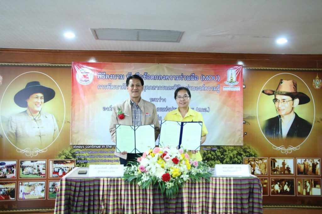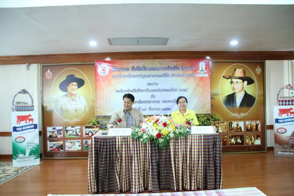 ช่วงสายวันที่ 25 ธันวาคม 2562 ดร.ณรงค์ฤทธิ์ วงศ์สุวรรณ ผู้อำนวยการ อ.ส.ค. และ รองศาตราจารย์ ดร.อนุชิตา มุ่งงาม คณบดีคณะเทคโนโลยี มหาวิทยาลัยมหาสารคาม ให้เกียรติร่วมพิธีลงนามบันทึกข้อตกลงความร่วมมือ (MOU) โครงการพัฒนาศักยภาพบุคลากรและนิสิต ระหว่างองค์การส่งเสริมกิจการโคนมแห่งประเทศไทย (อ.ส.ค.) กับคณะเทคโนโลยี มหาวิทยาลัยมหาสารคาม โดยมีวัตถุประสงค์เพื่อ พัฒนาบุคลากรทั้งสองหน่วยงานให้มีความรู้ และประสบการณ์ด้านเทคโนโลยี รวมถึงการพัฒนางานวิจัยและนวัตกรรม ณ ห้องประชุมสำนักงาน อ.ส.ค.ภาคตะวันออกเฉียงเหนือ อ.เมือง จ.ขอนแก่น