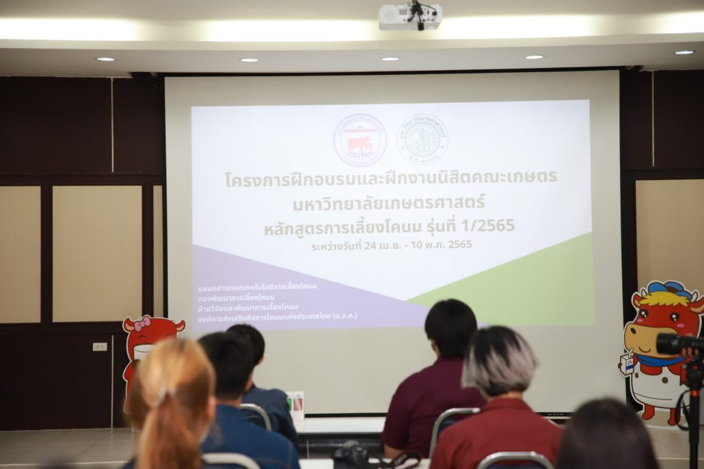วันที่ 27 เมษายน 2565 นายสมพร ศรีเมือง ผู้อำนวยการ อ.ส.ค. มอบหมายให้ นายพีระ ไชยรุตม์ ผู้ช่วยผู้อำนวยการ อ.ส.ค. เป็นประธานในพิธีเปิดโครงการฝึกอบรมและฝึกงานนิสิตคณะเกษตร มหาวิทยาลัยเกษตรศาสตร์ หลักสูตรการเลี้ยงโคนม รุ่นที่ 1 ประจำปีงบประมาณ 2565 จัดขึ้นระหว่างวันที่ 27 เมษายน ถึง 10 พฤษภาคม 2565 ตามบันทึกข้อตกลงความร่วมมือ (MOU) ทางวิชาการด้านกิจการโคนมและอุตสาหกรรม ระหว่าง อ.ส.ค. กับ มหาวิยาลัยเกษตรศาสตร์ เพื่อให้ความร่วมมือด้านการบริหารจัดการหลักสูตรการสอนและการฝึกอบรม โดยมีนิสิตเข้าร่วมโครงการจำนวน 20 คน และได้บันทึกเทปโทรทัศน์ช่องอัมรินทร์ ในหัวข้อ “ทำดี ทำง่าย แค่ใจอยากทำ” กับทางบริษัท อีซี่ ไลฟ์ สตูดิโอ จำกัด โดยทุกท่านได้ปฏิบัติตามมาตรการป้องกันการแพร่ระบาดของโรคติดเชื้อโควิด-19 อย่างเคร่งครัด ณ ศูนย์ฝึกอบรมการเลี้ยงโคนมไทย-เดนมาร์ค สำนักงานใหญ่ อ.ส.ค. มวกเหล็ก จ.สระบุรี