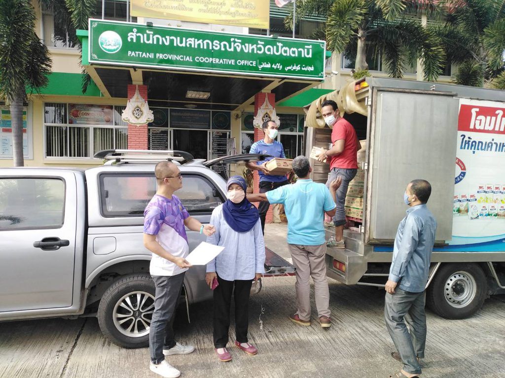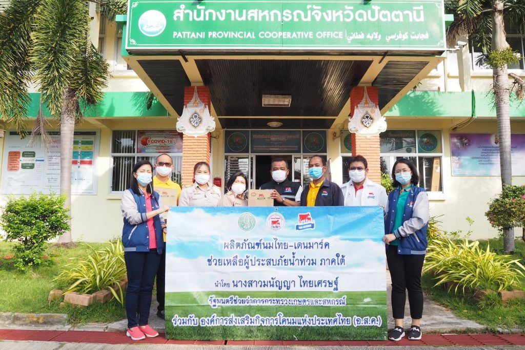 วันที่ 16 มกราคม 2564 นางสาวมนัญญา ไทยเศรษฐ์ รัฐมนตรีช่วยว่าการกระทรวงเกษตรและสหกรณ์ พร้อมด้วย นายอนุทิน ชาญวีรกูล รองนายกรัฐมนตรีและรัฐมนตรีว่าการกระทรวงสาธารณสุข และนายพิพัฒน์ รัชกิจประการ รัฐมนตรีว่าการกระทรวงการท่องเที่ยวและกีฬา ลงพื้นที่ตรวจราชการพื้นที่จังหวัดปัตตานี สถานการณ์อุทกภัย และการให้ความช่วยเหลือผู้ประสบภัยในพื้นที่จังหวัดปัตตานี และสถานการณ์ของโรคติดเชื้อไวรัสโคโรนา 2019 (โควิด-19) ระลอกใหม่ในพื้นที่จังหวัดปัตตานี โดยมี นายราชิด สุดพุ่ม ผู้ว่าราชการจังหวัดปัตตานี พร้อมด้วยหัวหน้าส่วนราชการให้การต้อนรับ ยังได้มอบถุงยังชีพและเมล็ดพันธุ์พืชให้เกษตรกร สมาชิกสหกรณ์การเกษตรทุ่งลิปะสะโง จำกัด ที่ได้รับผลกระทบจากอุทกภัย ทั้งนี้นายสุชาติ จริยาเลิศศักดิ์ รองผู้อำนวยการทำการแทนผู้อำนวยการ อ.ส.ค. ได้มอบให้นายอนุชิต สุกรินทร์ หัวหน้ากองบริหารงานทั่วไป รักษาการในตำแหน่งหัวหน้าสำนักงาน อ.ส.ค.ภาคใต้ พร้อมด้วยผู้บริหารในสังกัด ร่วมส่งมอบผลิตภัณฑ์นมยูเอชที. ขนาด 200 มล. จำนวน 200 ลัง ให้กับผู้ได้รับความเดือดร้อนจากอุทกภัยและสถานการณ์ของโรคติดเชื้อไวรัสโคโรนา 2019 (โควิด-19) ระลอกใหม่ ครั้งนี้ด้วย ณ สำนักงานสหกรณ์จังหวัดปัตตานี อำเภอเมือง จังหวัดปัตตานี