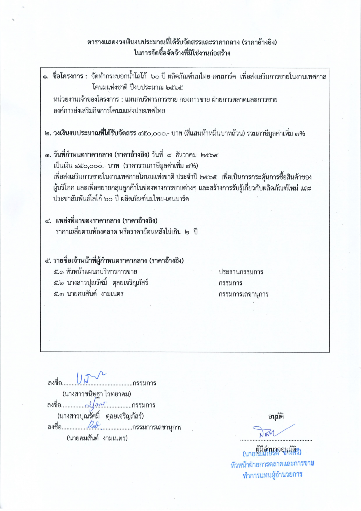 ราคากลางโครงการจัดทำกระบอกน้ำโลโก้นมไทย-เดนมาร์ค 60 ปี ผลิตภัณฑ์นมไทย-เดนมาร์ค เพื่อส่งเสริมการขายในงานเทศกาลโคนมแห่งชาติ ปีงบประมาณ 2565