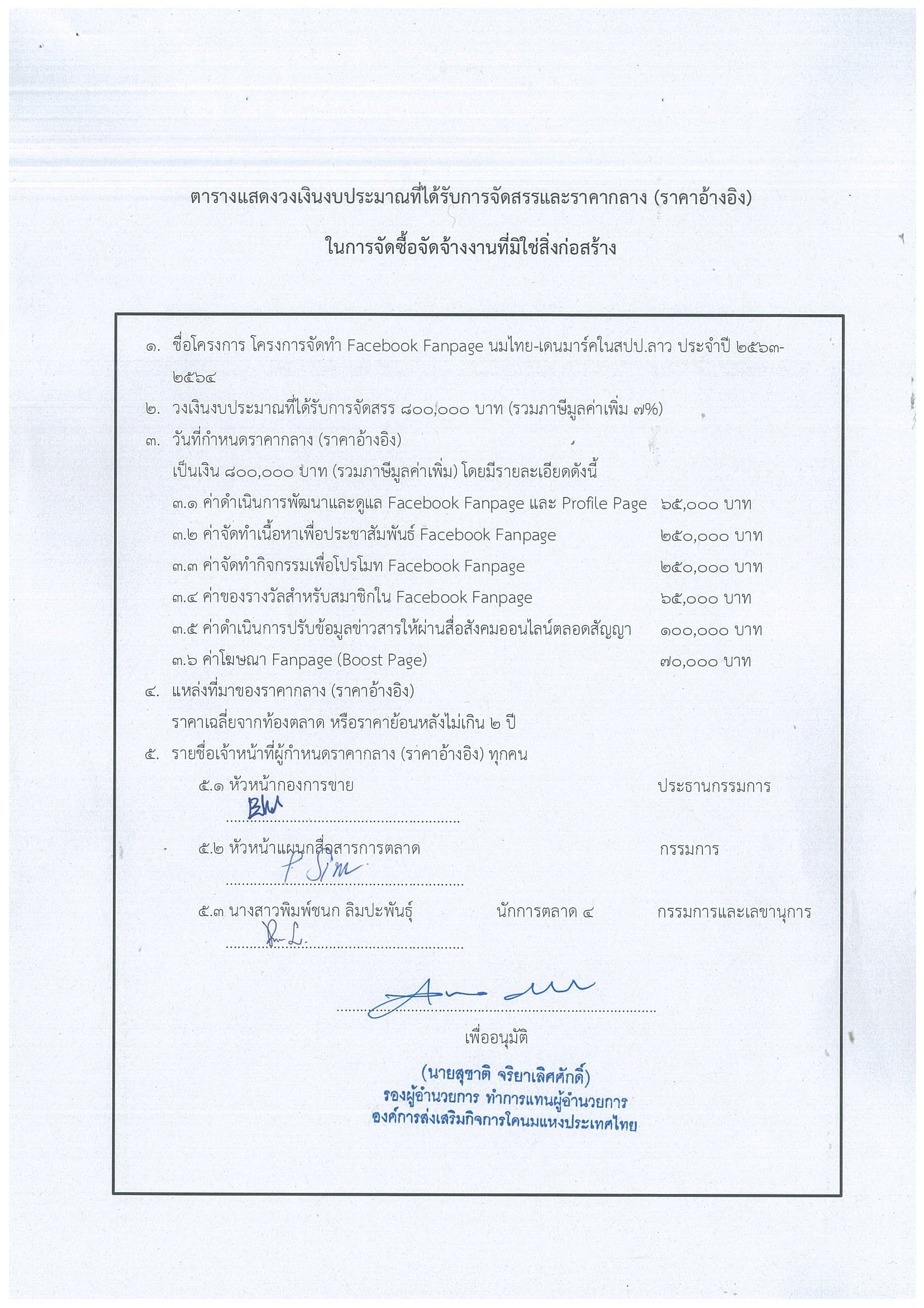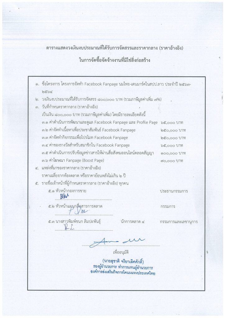 ราคากลางโครงการจัดทำ Facebook Fanpage นมไทย-เดนมาร์คในสปป.ลาว ประจำปี 2563-2564