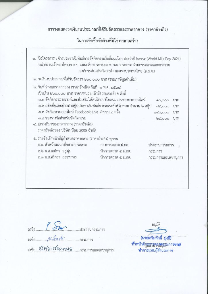 Homeประกาศจัดซื้อ จัดจ้างราคากลางโครงการจ้างประชาสัมพันธ์การจัดกิจกรรมวันดื่มนมโลก ประจำปี 2564 (World Milk Day 2021)