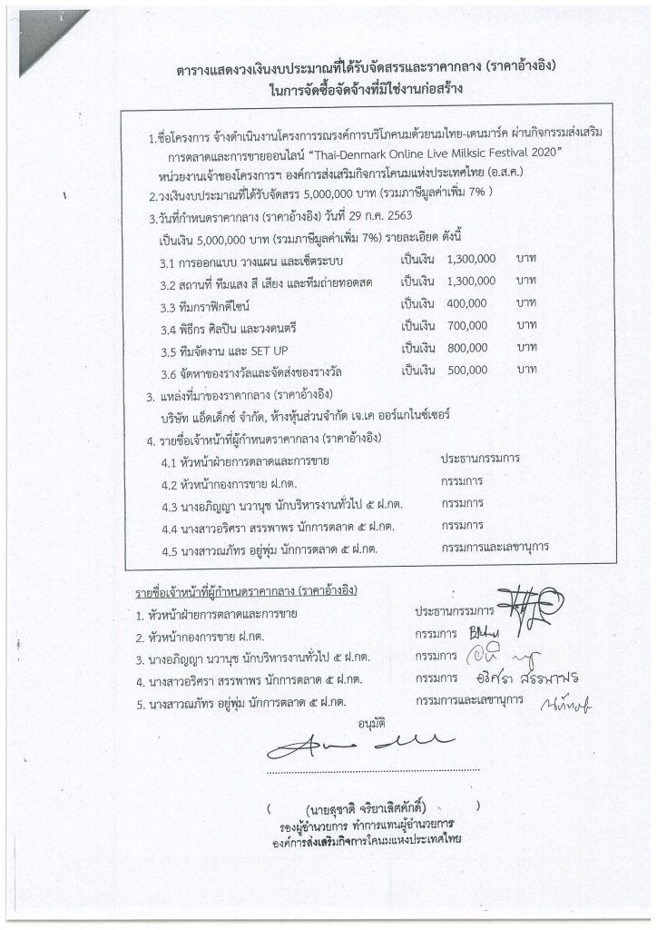 Homeประกาศจัดซื้อ จัดจ้างการเปิดเผยราคากลางราคากลางโครงการรณรงค์การบริโภคนมด้วยนมไทย-เดนมาร์ค ผ่านกิจกรรมส่งเสริมการตลาดและการขายออนไลน์ "Thai-Denmark Online Live Milksic Festival 2020""