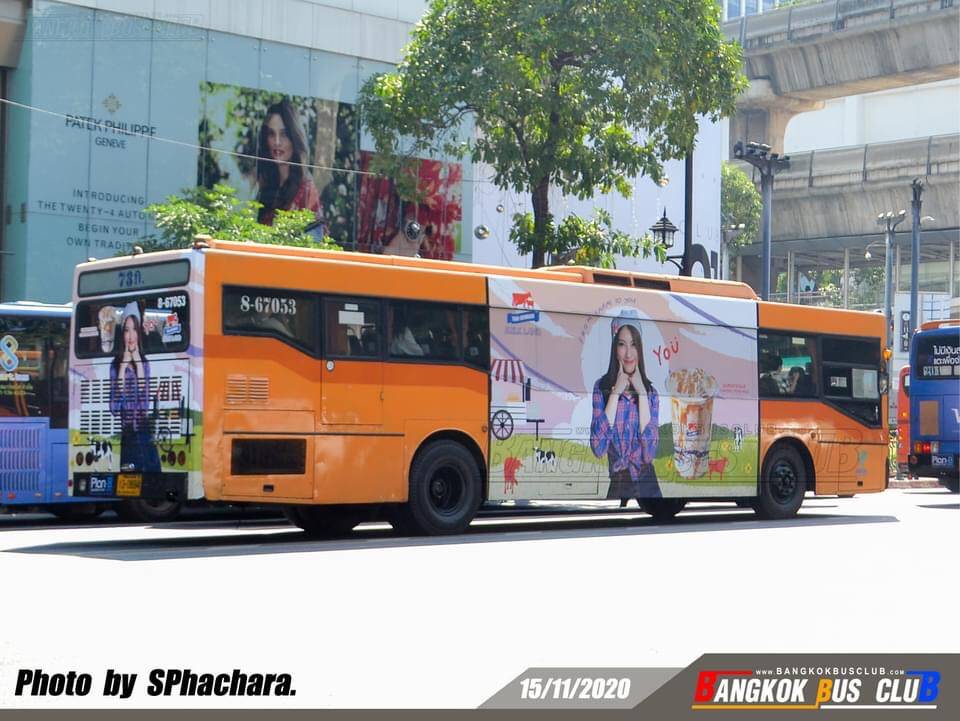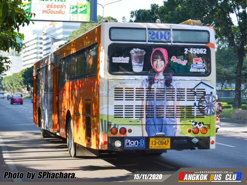ศิลปินไอดอลหญิงวง BNK48 ผ่านป้ายโฆษณา BUS AD (ข้างรถเมล์)
