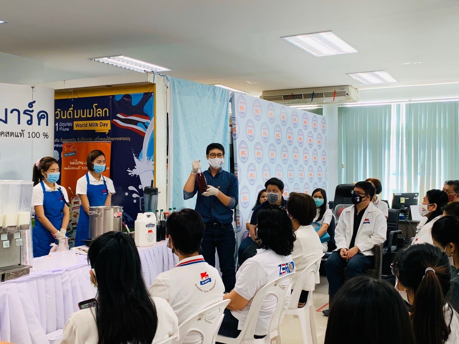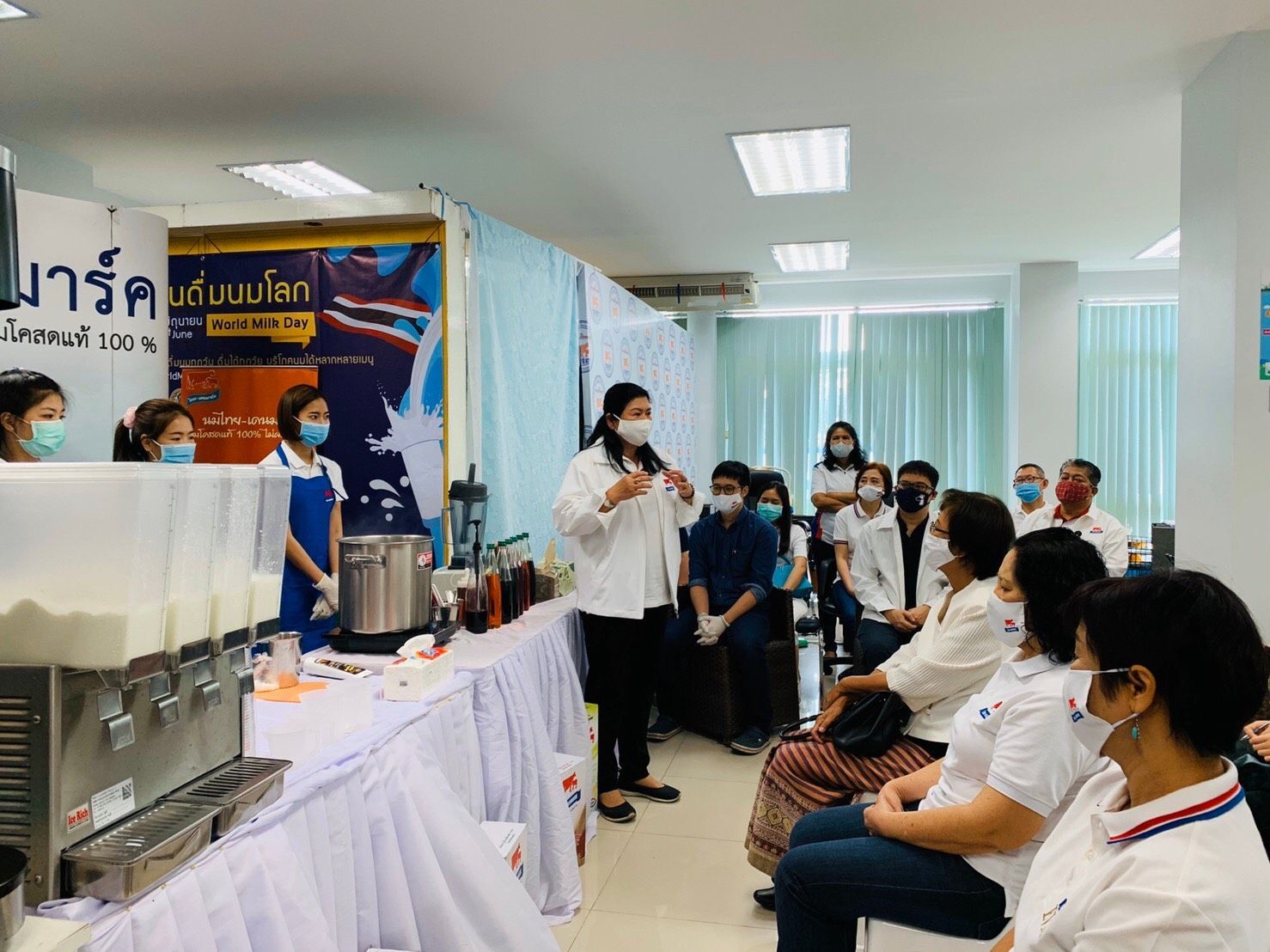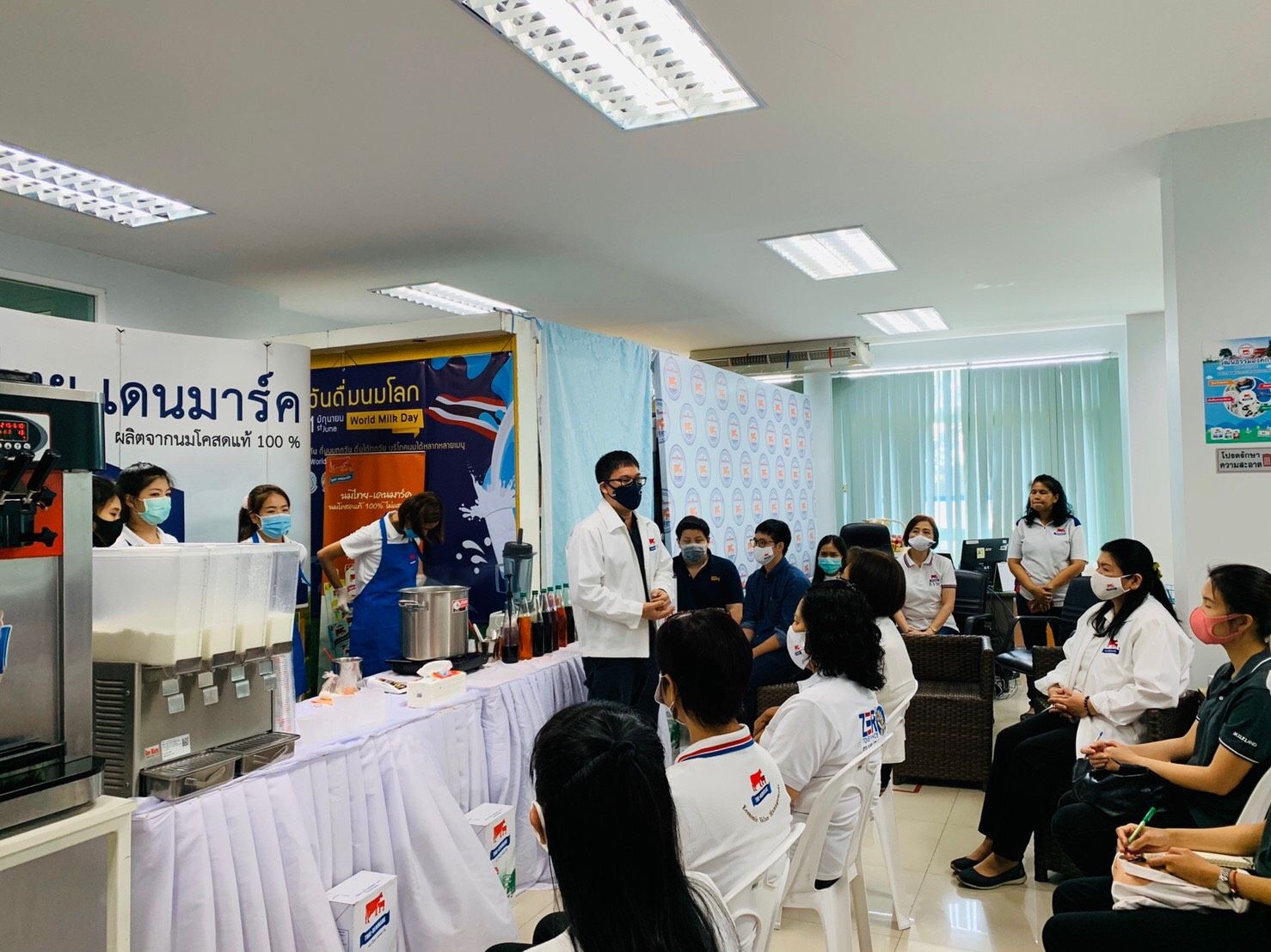 วันที่ 11 มิถุนายน 2563 นายธนพิพัฒน์ ธำรงสุธัญยุทธ์ อนุกรรมการ CG/CSR และนางสมใจ กรองไผ่กลาง หัวหน้าสำนักงาน อ.ส.ค.ภาคเหนือตอนบน พร้อมด้วยคณะทำงานฯ และพนักงานเข้าร่วมกิจกรรมสาธิตการทำเมนูจากผลิตภัณฑ์นมไทย-เดนมาร์คหลากหลายเมนู โดยได้รับเกียรติจากวิทยากร นายฉัตรมงคล ชื่นธีระวงศ์ ที่ปรึกษาในโครงการร้านนมไทย-เดนมาร์ค (Milk Shop) เป็นผู้บรรยายและสาธิตแลกเปลี่ยนเรียนรู้ในกิจกรรมครั้งนี้ ณ สำนักงาน อ.ส.ค.ภาคเหนือตอนบน อ.เมือง จ.เชียงใหม่