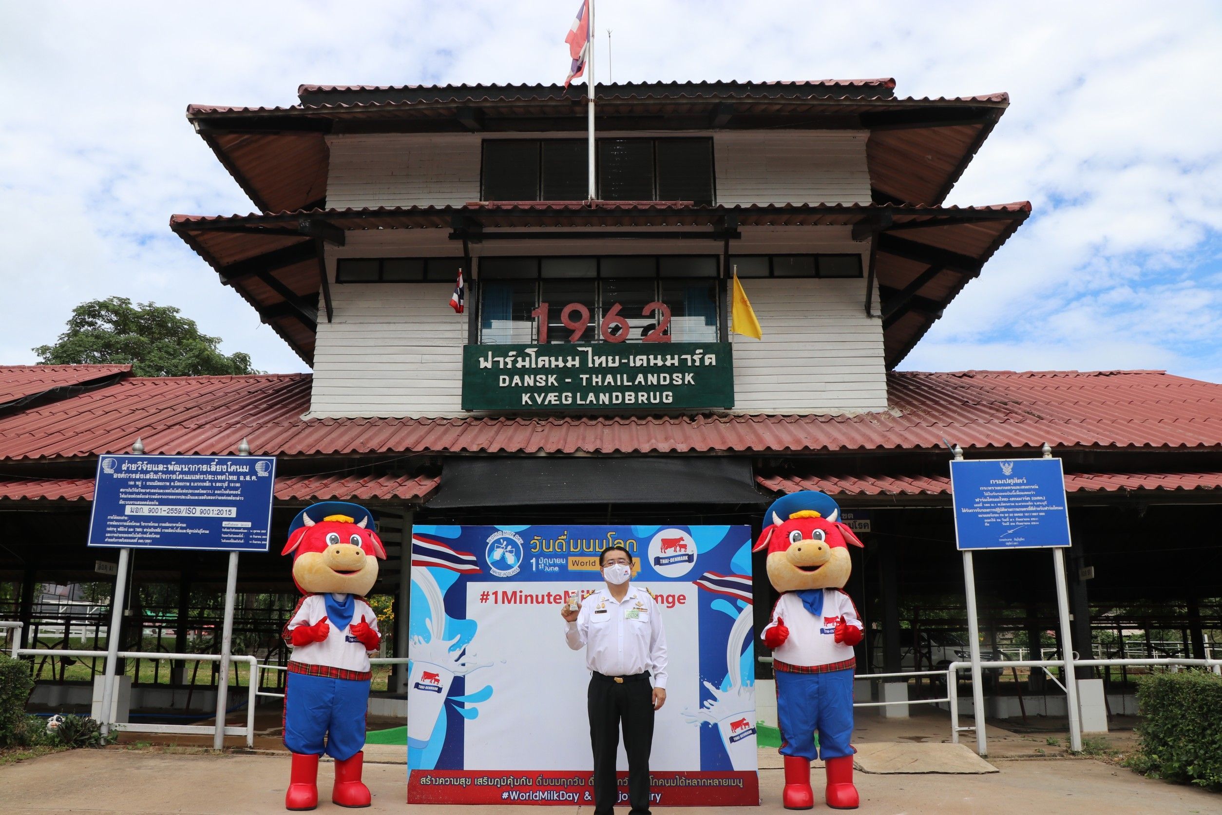 ช่วงเช้าวันที่ 1 มิถุนายน 2563 นายสุชาติ จริยาเลิศศักดิ์ รองผู้อำนวยการ ทำการแทนผู้อำนวยการ อ.ส.ค. พร้อมด้วยผู้บริหารและหัวหน้าส่วนราชการในเขตพื้นที่จังหวัดสระบุรี ร่วมกิจกรรมรณรงค์วันดื่มนมโลก ประจำปี 2563 (World Milk Day 2020) ภายใต้คำขวัญ “สร้างความสุข เสริมภูมิคุ้มกัน ดื่มนมทุกวัน ดื่มได้ทุกวัย บริโภคนมได้หลากหลายเมนู” ณ บริเวณหน้าอาคาร 1962 อ.ส.ค. อำเภอมวกเหล็ก จังหวัดสระบุรี