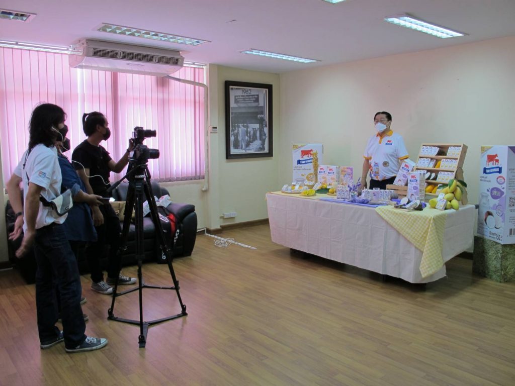 อ.ส.ค.ถ่ายทำคลิปวิดีโอเปิดตัวผลิตภัณฑ์ใหม่ นมปรุงแต่งยูเอชที รสเผือก และรสมะม่วงมหาชนก ตราไทย-เดนมาร์ค