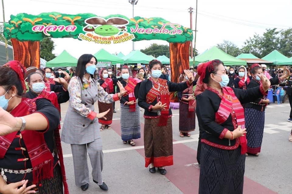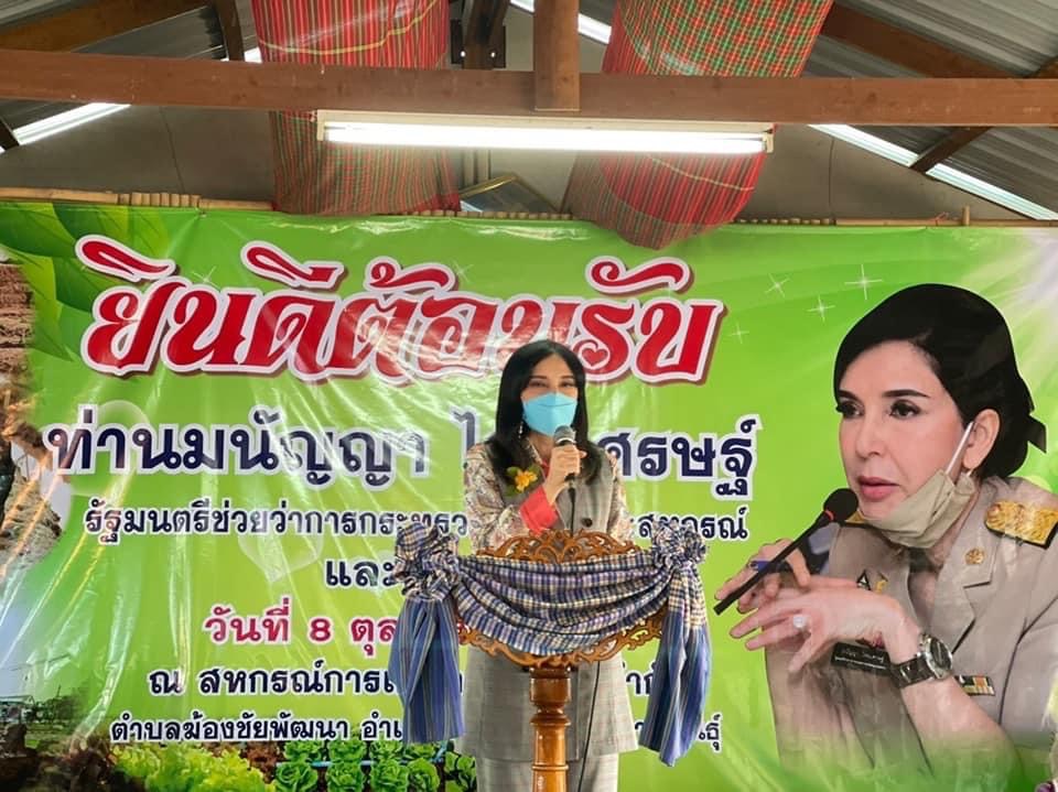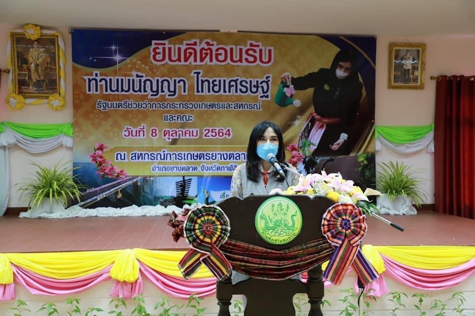 วันที่ 8 ตุลาคม 2564 นางสาวมนัญญา ไทยเศรษฐ์ รัฐมนตรีช่วยว่าการกระทรวงเกษตรและสหกรณ์ ให้เกียรติลงพื้นที่จังหวัดกาฬสินธุ์ เพื่อตรวจราชการตามนโยบายกระทรวงเกษตรและสหกรณ์ โดยมี นายทรงพล ใจกริ่ม ผู้ว่าราชการจังหวัดกาฬสินธุ์,นายวิศิษฐ์ ศรีสุวรรณ์ อธิบดีกรมส่งเสริมสหกรณ์,นายถาพร ณ นคร หัวหน้าผู้ตรวจราชการกรมส่งเสริมสหกรณ์,นายประวัติ แดงบรรจง ผู้ตรวจราชการกรมส่งเสริมสหกรณ์,โดยนายสมพร ศรีเมือง รองผู้อำนวยการ ทำการแทนผู้อำนวยการ อ.ส.ค.มอบหมายให้ นายวินิจ วงศ์วโรฬาร หัวหน้าสำนักงาน อ.ส.ค.ภาคตะวันออกเฉียงเหนือเป็นผู้แทนพร้อมด้วยผู้บริหาร อ.ส.ค. และหัวหน้าส่วนราชการหน่วยงานสังกัดกระทรวงเกษตรฯ ในพื้นที่จังหวัดกาฬสินธุ์ ให้การต้อนรับ โดยในช่วงเช้า รมช.มนัญญาฯ ได้ลงพื้นที่เยี่ยมชมผลการดำเนินงานของสหกรณ์การเกษตรยางตลาด จำกัด มอบกล้าพันธุ์ฟ้าทะลายโจร ที่ได้รับการสนับสนุนจากกรมวิชาการเกษตร ให้กับสหกรณ์การเกษตรในพื้นที่จังหวัดกาฬสินธุ์ เพื่อให้เกษตรกรนำไปปลูกเป็นวัตถุดิบเพื่อนำไปพัฒนายาต้านเชื้อไวรัสโคโรนา 2019,เยี่ยมชมนิทรรศการร้านค้าต่างๆ ในช่วงบ่ายได้เดินทางไปลงพื้นที่สหกรณ์การเกษตรปันบุญ จำกัด ตำบลฆ้องชัยพัฒนา อำเภอฆ้องชัย จังหวัดกาฬสินธุ์ เยี่ยมชมการปลูกผักแบบออแกนิกเพื่อส่งขายยังห้างสรรพสินค้า และแนะนำวิธีการสร้างรายได้ที่ยั่งยืนให้เกษตรกร และในช่วงเย็น ได้ให้เกียรติเป็นประธานเปิดป้ายตลาดต้นยาง เทศบาลตำบลยางตลาด ตำบลยางตลาด อำเภอยางตลาด จังหวัดกาฬสินธุ์ ซึ่งเป็นตลาดต้นแบบในด้านการจัดการ โดยภายใต้ภารกิจต่างๆ ของ รมช.มนัญญาฯ ทางสำนักงาน อ.ส.ค. ภาคตะวันออกเฉียงเหนือ ได้นำผลิตภัณฑ์นมไทย-เดนมาร์ค ยูเอชที รสช็อกโกแลต ขนาด 250 มล.แจกให้กับผู้เข้าร่วมงาน เพื่อเป็นการประชาสัมพันธ์แบรนด์ไทย-เดนมาร์ค อีกช่องทางหนึ่ง ทั้งนี้ ผู้ร่วมงานได้ปฏิบัติตามมาตรการป้องกันการแพร่ระบาดของโรคติดเชื้อโควิด-19 อย่างเคร่งครัด ณ พื้นที่จังหวัดกาฬสินธุ์