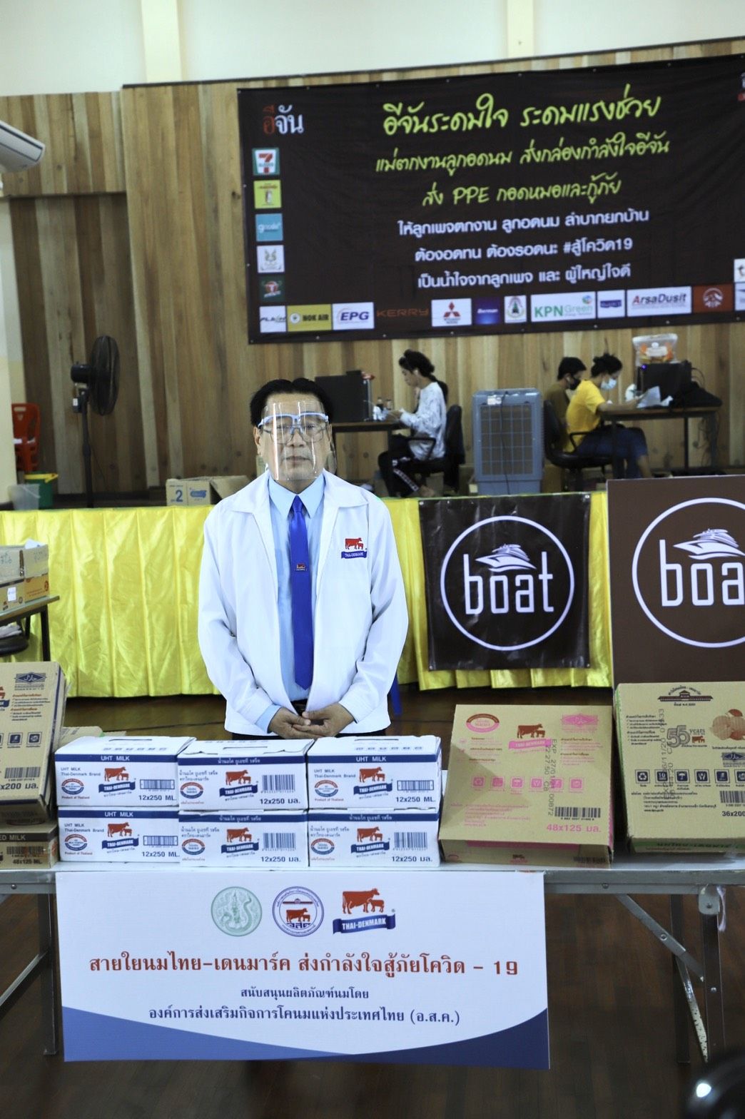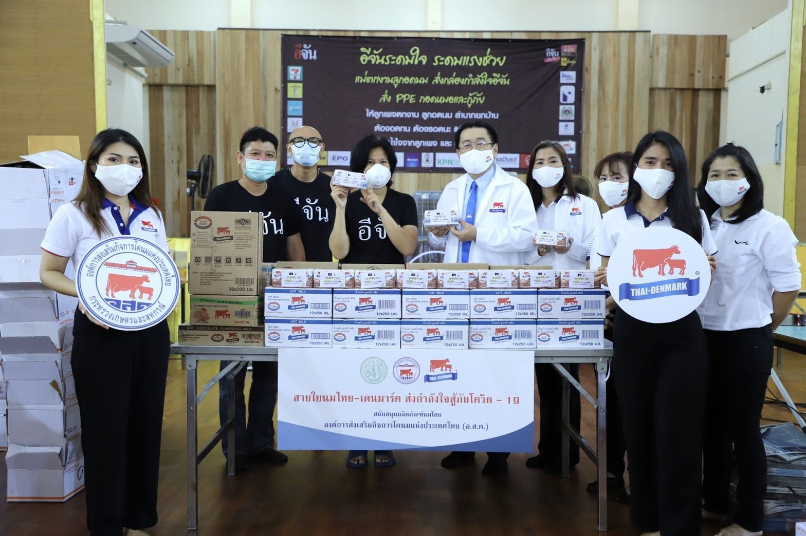 บ่ายวันที่ 30 เมษายน 2563 นายสุชาติ จริยาเลิศศักดิ์ รองผู้อำนวยการ ทำการแทน ผู้อำนวยการ อ.ส.ค. ได้ให้เกียรติมอบผลิตภัณฑ์นม ยูเอชที ตราไทย-เดนมาร์ค ภายใต้โครงการ สายใยนมไทย-เดนมาร์ค ส่งกำลังใจสู้ภัยโควิด-19 โดยส่งมอบให้กับ เพจอีจัน “อีจันระดมใจ ระดมแรงช่วย แม่ตกงาน ลูกอดนม” โดยทาง อ.ส.ค. ขอร่วมเป็นส่วนหนึ่งในการส่งมอบกำลังใจให้แก่พี่น้องประชาชน ที่ได้รับผลกระทบจากวิกฤติโควิด-19 ณ หอประชุมโรงเรียนพิบูลย์ประชาสรรค์ ดินแดง กรุงเทพฯ