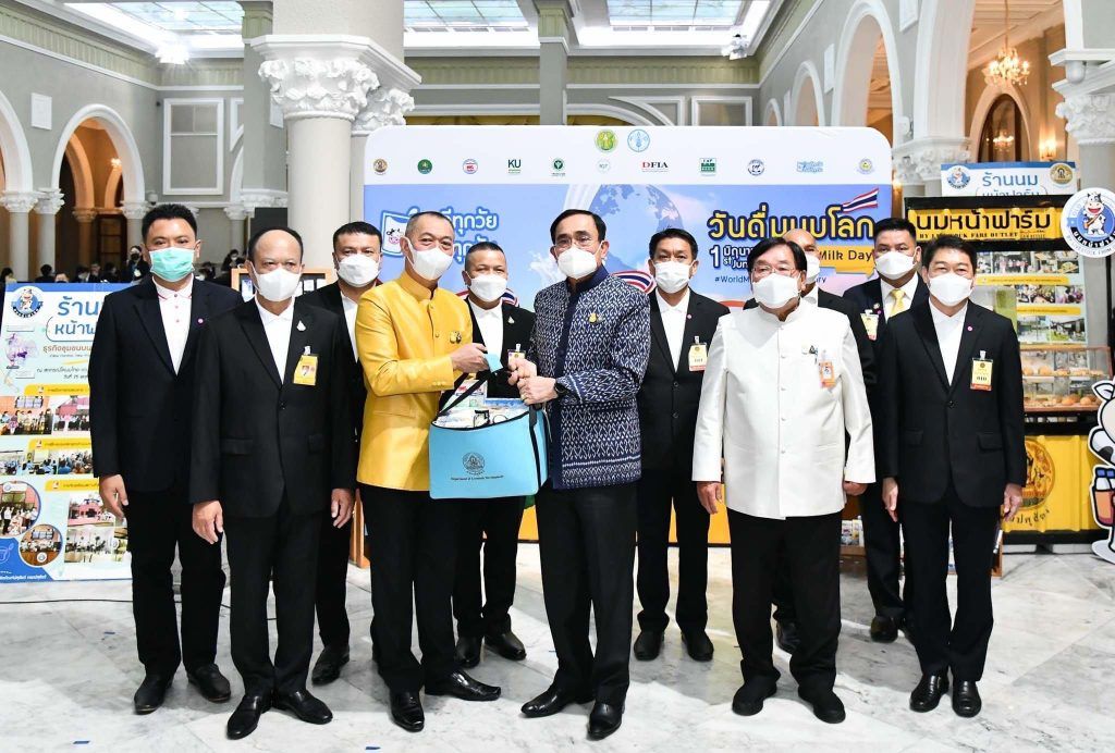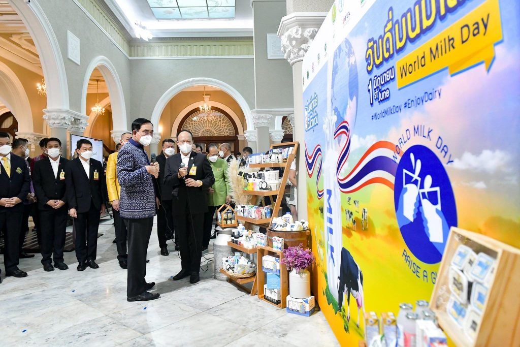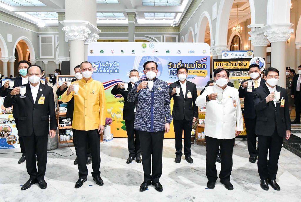 ช่วงเช้าวันที่ 24 พฤษภาคม 2565 พลเอก ประยุทธ์ จันทร์โอชา นายกรัฐมนตรี ให้เกียรติเป็นประธานในการประชาสัมพันธ์ “วันดื่มนมโลก ประจำปี 2565 (World Milk Day 2022)” โดยมี นายเฉลิมชัย ศรีอ่อน รัฐมนตรีว่าการกระทรวงเกษตรและสหกรณ์ กล่าวความเป็นมาและวัตถุประสงค์ของงาน เพื่อสนับสนุนและรณรงค์ให้ประเทศต่างๆให้ความสำคัญและสนับสนุนการบริโภคนมภายในประเทศ ทั้งนี้ปี 2565 ได้กำหนดรูปแบบงานภายใต้แนวคิด “สร้างความสุข เสริมภูมิคุ้มกัน ดื่มนมทุกวันดื่มได้ทุกวัย บริโภคนมได้หลากหลายเมนู” หรือ Enjoy Dairy เพื่อรณรงค์การบริโภคนมในสังคมไทยมุ่งสร้างความเข้าใจและการรับรู้ในวงกว้าง พร้อมด้วย นางสาวมนัญญา ไทยเศรษฐ์ รัฐมนตรีช่วยว่าการกระทรวงเกษตรแะสหกรณ์ ดร.ทองเปลว กองจันทร์ ปลัดกระทรวงเกษตรและสหกรณ์ นายสัตวแพทย์สรวิศ ธานีโต อธิบดีกรมปศุสัตว์ นายวิศิษฐ์ ศรีสุวรรณ์ และคณะ ร่วมให้การต้อนรับ โดย นายสมพร ศรีเมือง ผู้อำนวยการ อ.ส.ค. มอบหมายให้ นายชัยณรงค์ เปาอินทร์ รองผู้อำนวยการ อ.ส.ค. เข้าให้การต้อนรับและร่วมงานในครั้งนี้ ทั้งนี้ทุกท่านได้ปฏิบัติตามมาตรการป้องกันการแพร่ระบาดของโรคติดเชื้อโควิด-19 อย่างเคร่งครัด ณ บริเวณตึกสันติไมตรีหลังนอก ทำเนียบรัฐบาล กรุงเทพฯ