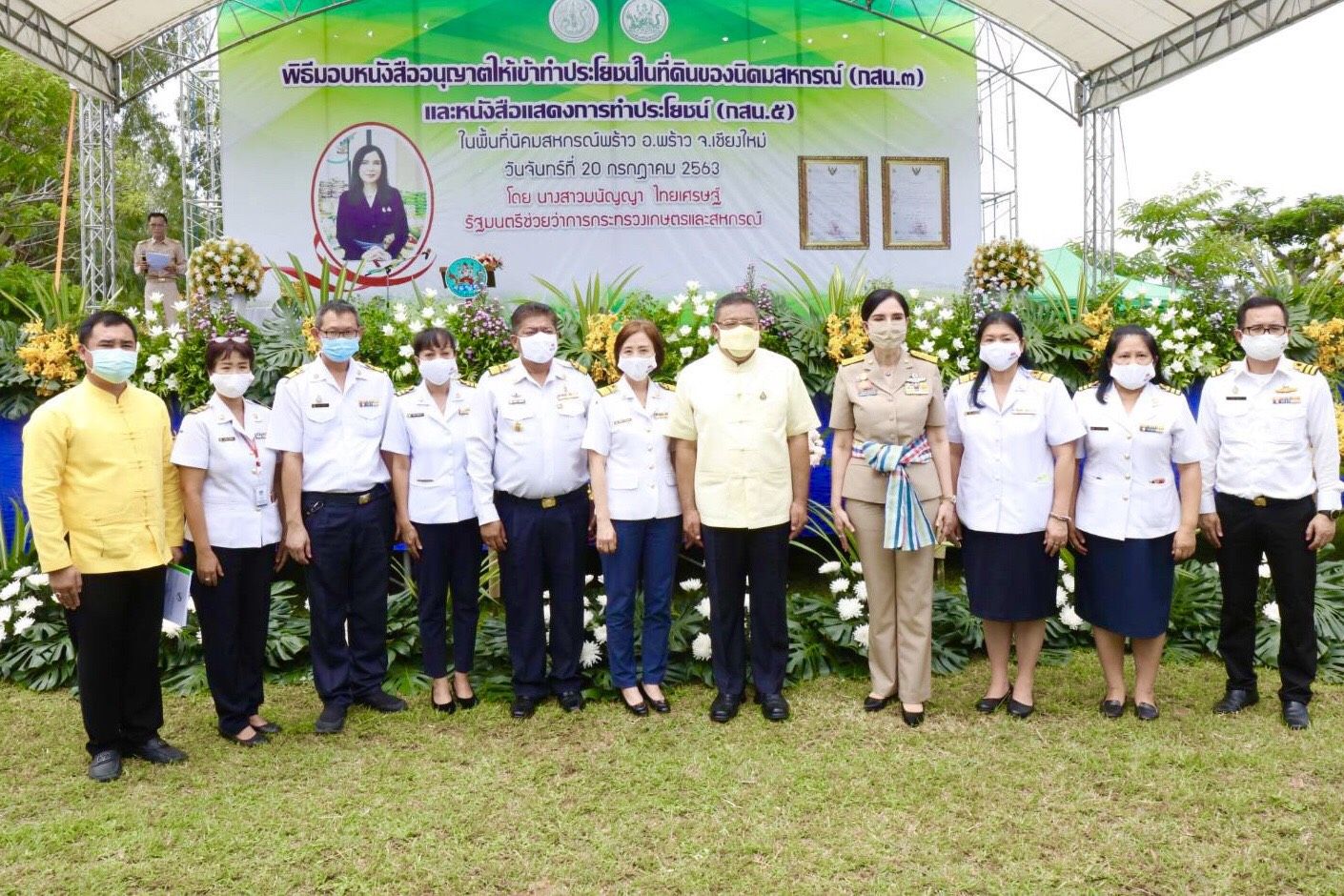 ช่วงเช้า วันที่ 20 กรกฎาคม 2563 นายสุชาติ จริยาเลิศศักดิ์ รองผู้อำนวยการทำการแทนผู้อำนวยการ อ.ส.ค. มอบหมายให้ นางสมใจ กรองไผ่กลาง หัวหน้าสำนักงาน อ.ส.ค. ภาคเหนือตอนบน ร่วมติดตามการลงพื้นที่ของนางสาวมนัญญา ไทยเศรษฐ์ รัฐมนตรีช่วยว่าการกระทรวงเกษตรและสหกรณ์ และคณะ โดยได้เข้าร่วมพิธีมอบหนังสืออนุญาตให้เข้าทำประโยชน์ในที่ดินของนิคมสหกรณ์(กสน.3) และหนังสือแสดงการทำประโยชน์ (กสน.5) เพื่อให้เกษตรกรได้มีที่ดินทำกิน พึ่งพาตนเองได้ โดยกระทรวงเกษตรพร้อมสนับสนุนอย่างรอบด้าน ผนวกกับโครงการภายใต้การดำเนินงานของสหกรณ์ ณ นิคมสหกรณ์พร้าว อ.พร้าว จ.เชียงใหม่