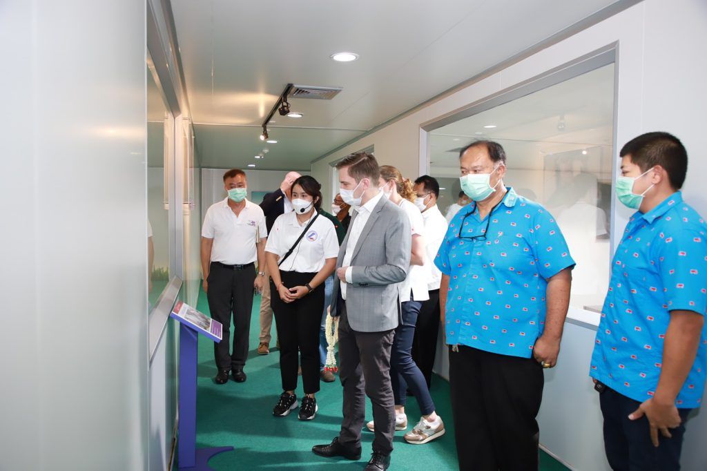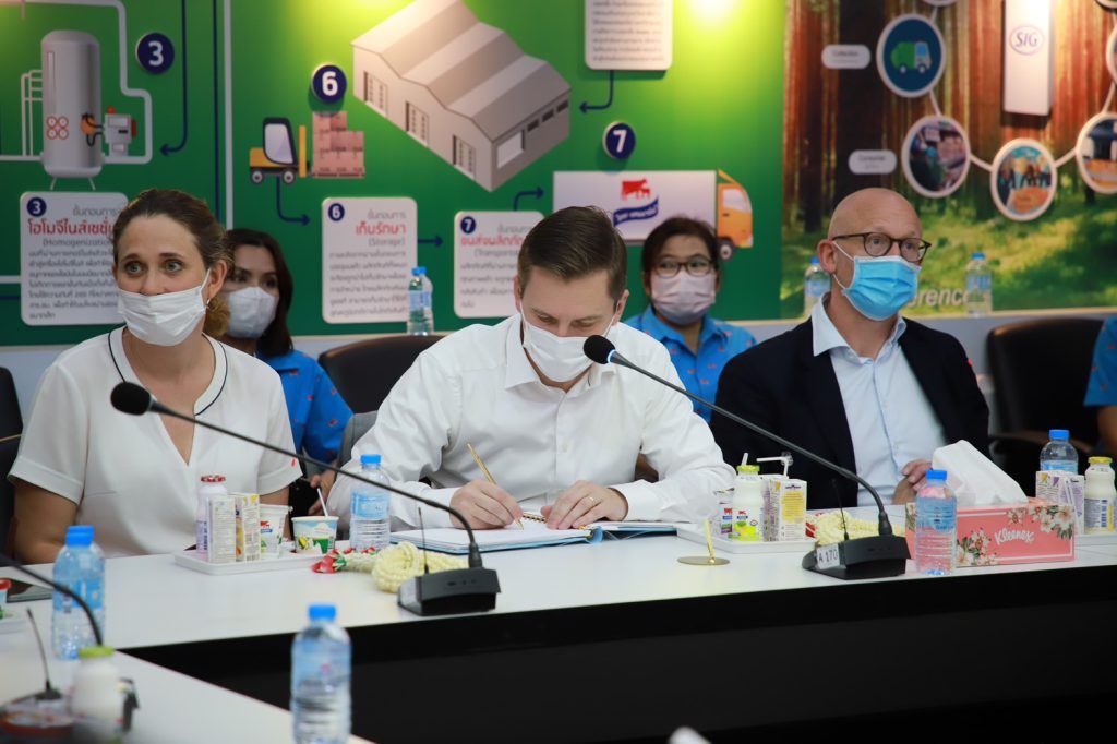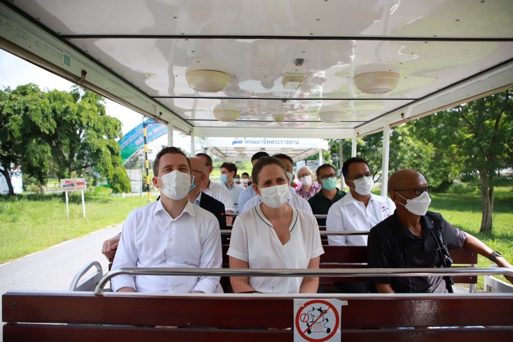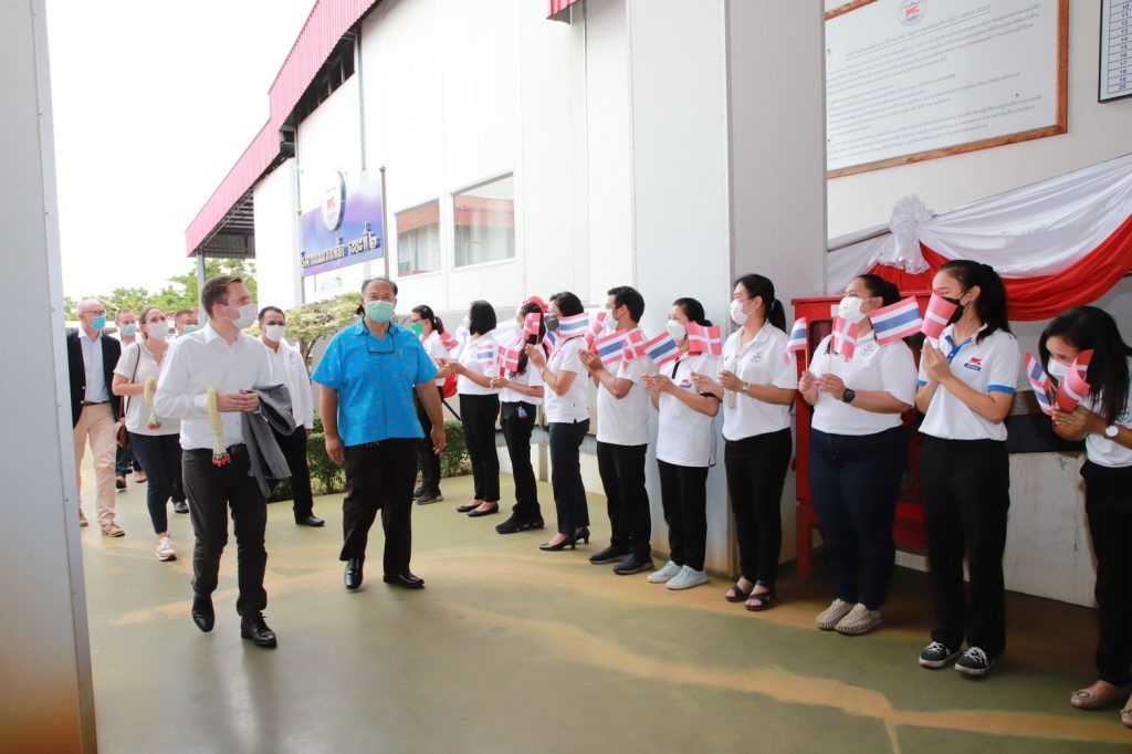 วันที่ 30 – 31 พฤษภาคม 2565 นายสมพร ศรีเมือง ผู้อำนวยการ อ.ส.ค. พร้อมด้วยผู้บริหาร อ.ส.ค. ร่วมกับกรมปศุสัตว์ ให้การต้อนรับคณะเอกอัครราชทูตราชอาณาจักรเดนมาร์ก หน่วยงาน Danish Veterinary and Food Administration (DVFA) ราชอาณาจักรเดนมาร์ก ในการจัดประชุมเพื่อขับเคลื่อนการดำเนินงาน ภายใต้บันทึกความเข้าใจด้านวิชาการโคนมไทย-เดนมาร์ค โดยได้นำคณะเอกอัครราชฑูตฯ เข้าเยี่ยมชมกิจการของอ.ส.ค. เริ่มจาก กิจกรรมการท่องเที่ยวเชิงเกษตร ฟาร์มโคนมประสิทธิภาพสูง กระบวนการผลิตผลิตภัณฑ์นมของโรงงานนมมวกเหล็ก ณ สำนักงานใหญ่ อ.ส.ค. อ.มวกเหล็ก จ.สระบุรี โดยทุกท่านได้ปฏิบัติตามมาตรการป้องกันการแพร่ระบาดของโรคติดเชื้อไวรัสโควิด-19 อย่างเคร่งครัด