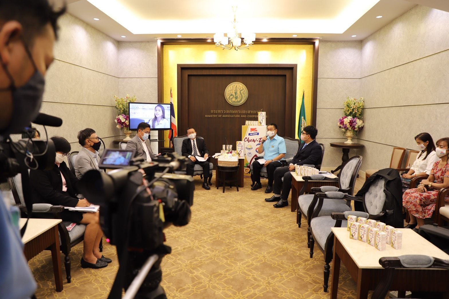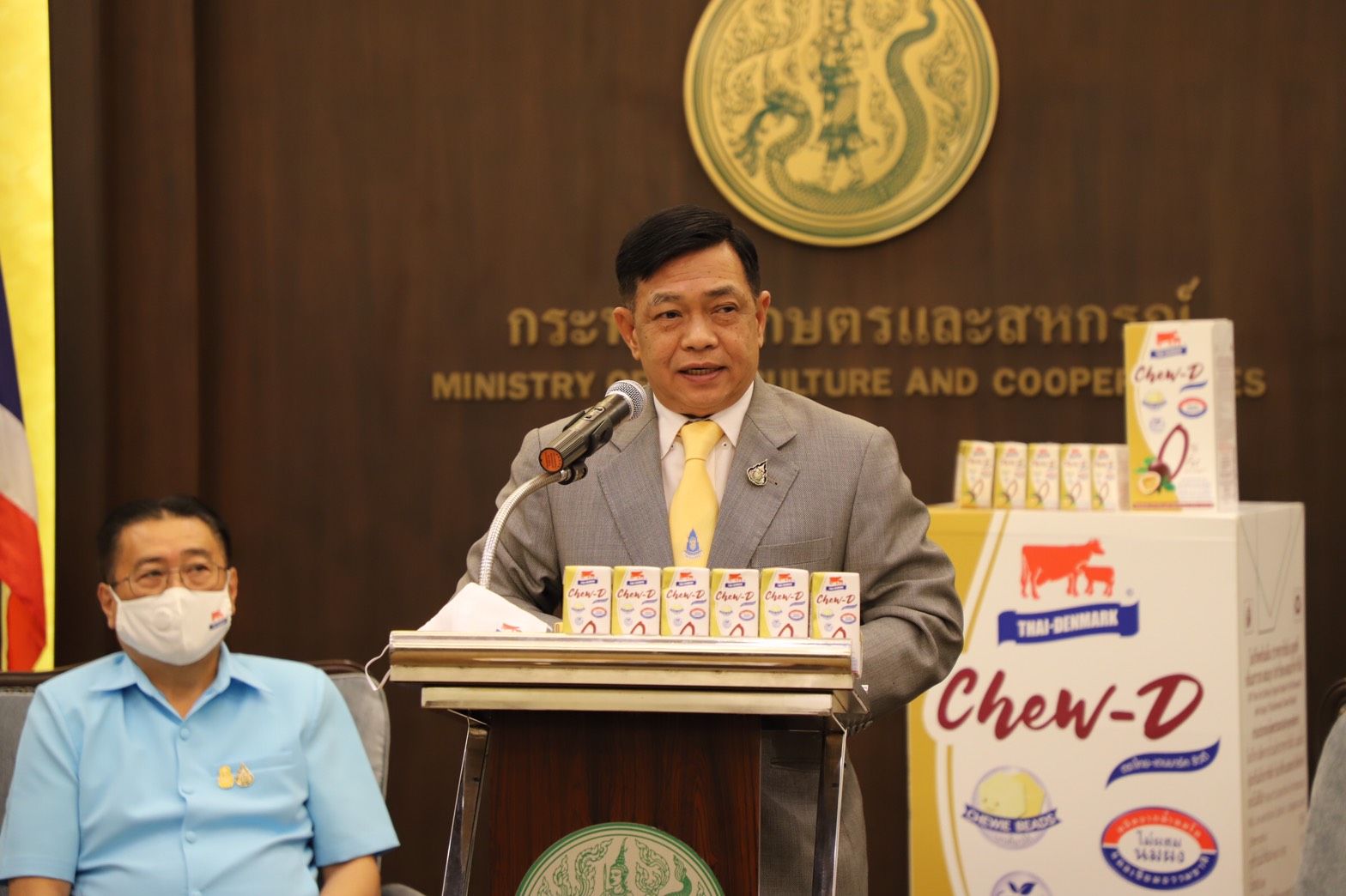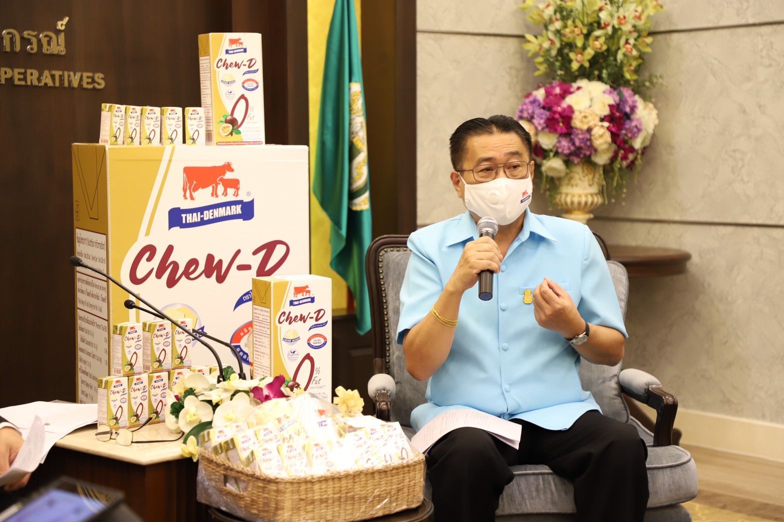 โดยครั้งนี้องค์การส่งเสริมกิจการโคนมแห่งประเทศไทย (อ.ส.ค.) ภายใต้การกำกับดูแลของ นางสาวมนัญญาไทยเศรษฐ์ รัฐมนตรีช่วยว่าการกระทรวงเกษตรและสหกรณ์ โดยนายสุชาติ จริยาเลิศศักดิ์ รองผู้อำนวยการ ทำการแทนผู้อำนวยการ อ.ส.ค.ได้ร่วมแถลงข่าวเรื่องการเปิดตัวโยเกิร์ตพร้อมดื่มปราศจากไขมันกลิ่นเสาวรสผสมบุก ตราไทย-เดนมาร์ค “Chew-D” เพื่อตีตลาดคนรุ่นใหม่สายเฮลท์ตี้ ร่วมกับอีก 2 หน่วยงานคือกรมส่งเสริมสหกรณ์ โดยนายศักดิ์ชัย ไชยพุทธ ผู้อำนวยการกองพัฒนาระบบสนับสนุนการสหกรณ์ กรมส่งเสริมสหกรณ์ และกรมชลประทานโดย ดร.ธเนศร์ สมบูรณ์ ผู้เชี่ยวชาญด้านที่ปรึกษาอุทกวิทยา กรมชลประทาน ณ ห้องประชุม 112 กระทรวงเกษตรและสหกรณ์ กรุงเทพฯ