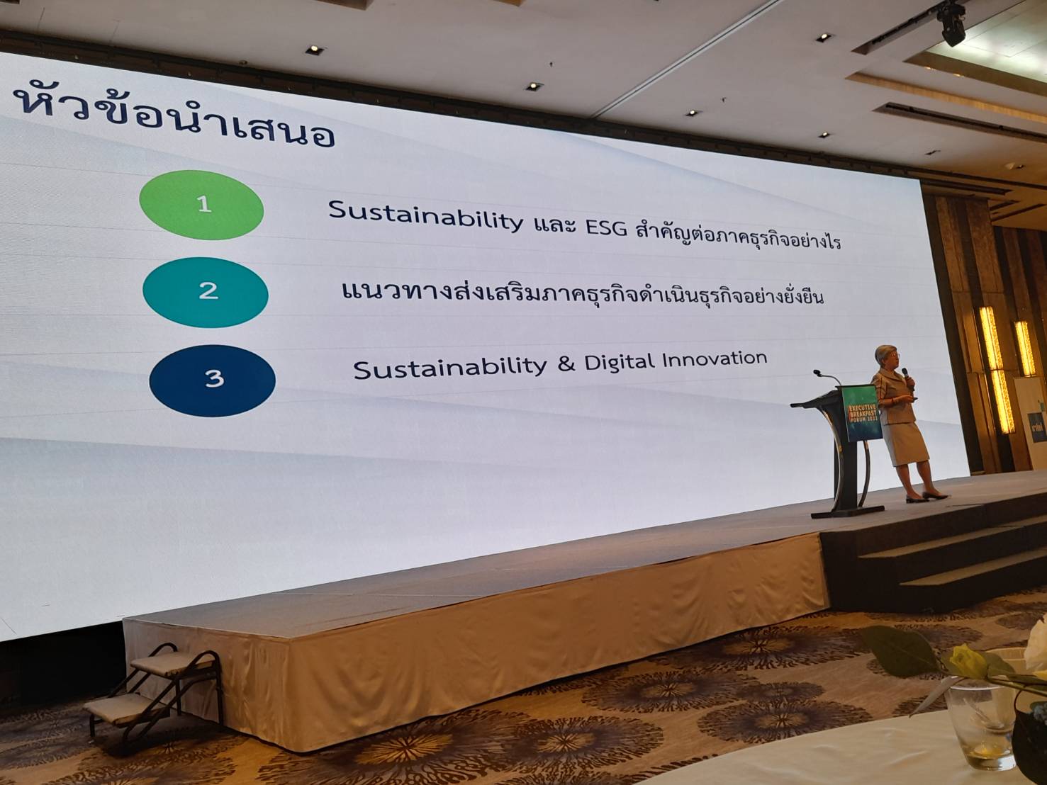 วันที่ 11 ตุลาคม 2565 นายสมพร ศรีเมือง ผู้อำนวยการ อ.ส.ค. ได้มอบหมายให้ นายชัยณรงค์ เปาอินทร์ รองผู้อำนวยการ อ.ส.ค. พร้อมด้วย นางกัญญา ศรีฟ้า หัวหน้าฝ่ายเทคโนโลยีดิจิทัล เข้าร่วมงาน Executive Breakfast Forum 2022 EP.16 Shaping a Sustainable Digital Future จัดโดยกระทรวงดิจิทัลเพื่อเศรษฐกิจและสังคม (MDES) และสมาคมผู้ใช้ดิจิทัลไทย (DUGA) และได้เรียนเชิญผู้บริหารระดับสูงจากองค์กรธุรกิจด้านค้าปลีก สินค้าอุปโภคบริโภคชั้นแนวหน้าของประเทศ โดยได้รับเกียรติจากคุณรื่นวดี สุวรรณมงคล เลขาธิการคณะกรรมการกำกับหลักทรัพย์และตลาดหลักทรัพย์ เป็นวิทยากรบรรยายในหัวข้อ Executive Keynote: A Conversation on Sustainability and Digital Innovation เมื่อแนวโน้มของผู้คนทั้งโลกต่างหันกลับมาใส่ใจเรื่องควา มยั่งยืน ณ ห้อง Royal Maneeya Ballroom ชั้น M โรงแรมเรเนซองส์ กรุงเทพฯ