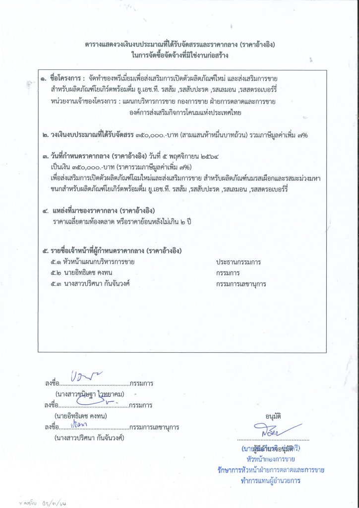 Homeประกาศจัดซื้อ จัดจ้างการเปิดเผยราคากลางโครงการจัดทำของพรีเมี่ยมเพื่อส่งเสริมการเปิดตัวผลิตภัณฑ์ใหม่ และส่งเสริมการขายสำหรับผลิตภัณฑ์โยเกิร์ตพร้อมดื่ม ยู.เอช.ที. รสส้ม, รสสับปะรด, รสเลมอน, รสสตรอเบอร์รี่