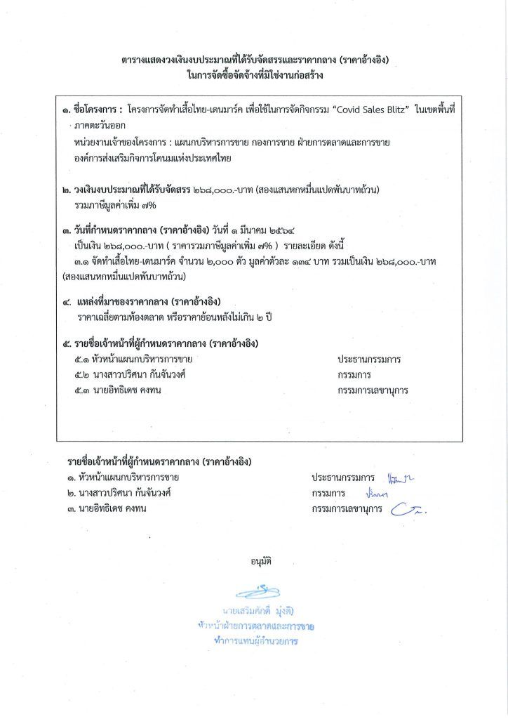 Homeประกาศจัดซื้อ จัดจ้างการเปิดเผยราคากลางโครงการจัดทำเสื้อไทย-เดนมาร์ค เพื่อใช้ในการจัดกิจกรรม "Covid Sales Blitz" ในเขตพื้นที่ภาคตะวันออก