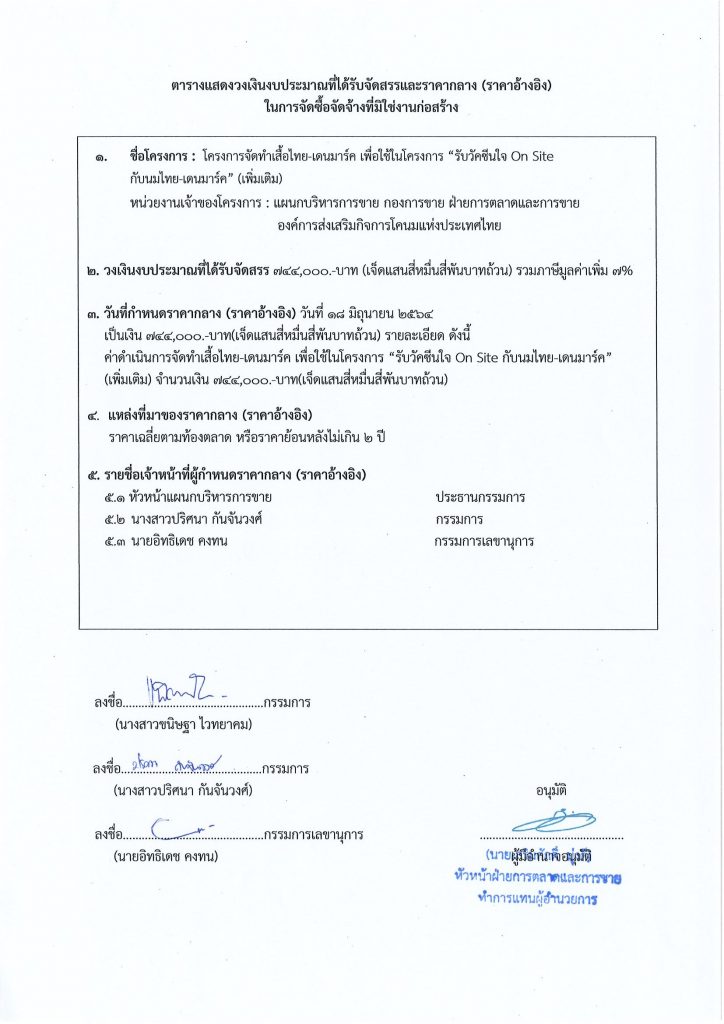โครงการจัดทำเสื้อไทย-เดนมาร์ค เพื่อใช้ในโครงการ “รับวัคซีนใจ On Site กับนมไทย-เดนมาร์ค” (เพิ่มเติม)